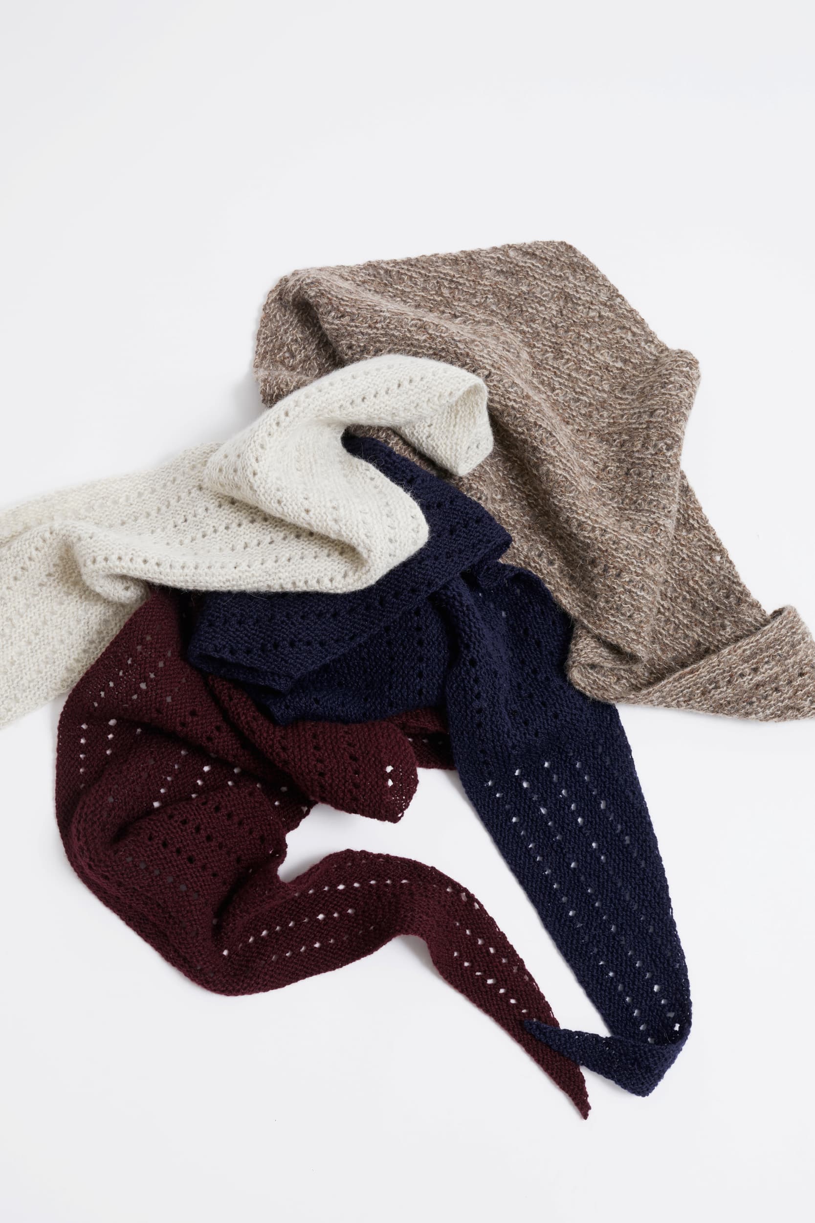 Heia struktursjal er et litt smalt sjal i riller med et enkelt hullmønster. Det strikkes fra midtspissen og ut, med økninger i hver side. Den avlange formen gjør at man fint kan surre det to ganger rundt halsen uten at det tar så mye plass. Heia struktursjal kan enten strikkes med én tråd Lamull sammen med én tråd Alpaca silk, eller med én enkel tråd Finull.