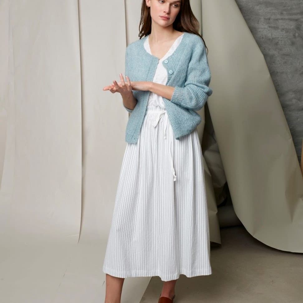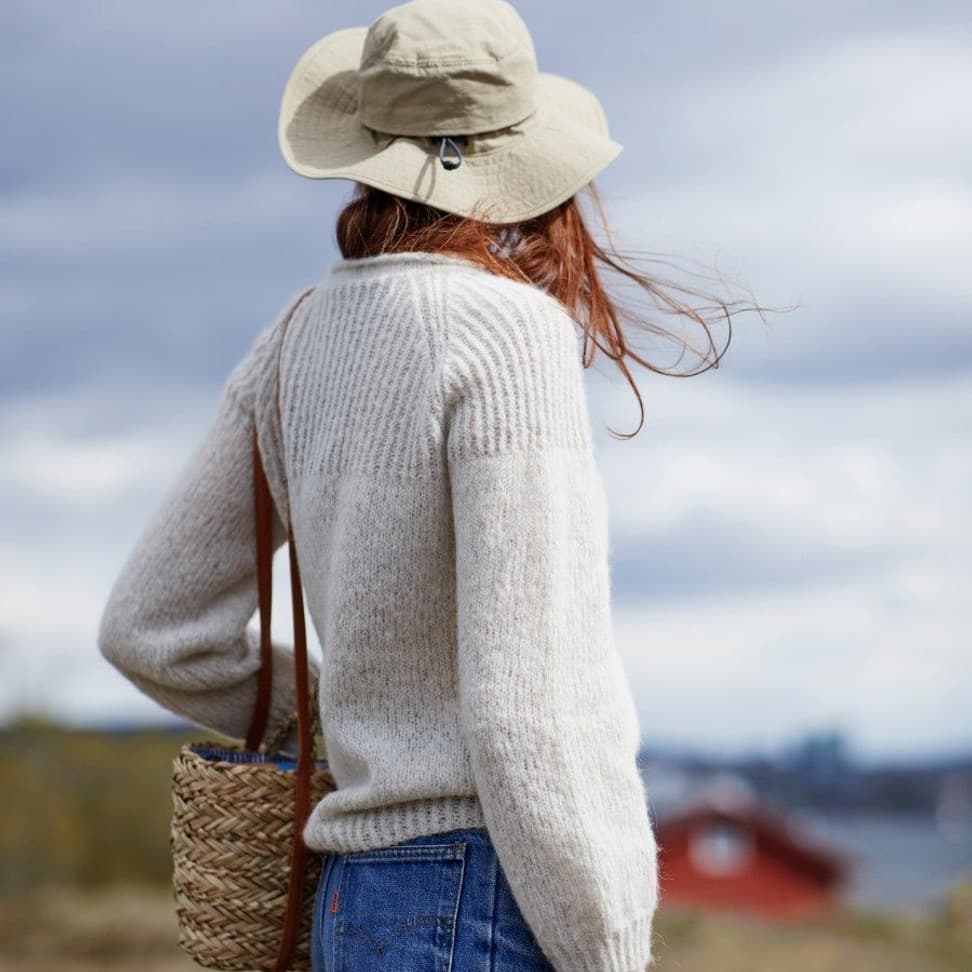 Garnkombinasjoner og forslag til strikkefasthet (p): Husk å strikke prøvelapp. Alpakka Lin + Lamull: 16 m = 10 cm (4,5) Alpakka Lin x 2: 14 m = 10 cm (5,5) Alpakka Lin + Finull: 14 m = 10 cm (5,5) Alpakka Lin + 3-tråds: 13 m = 10 cm (6) Garnalternativer: Fivel