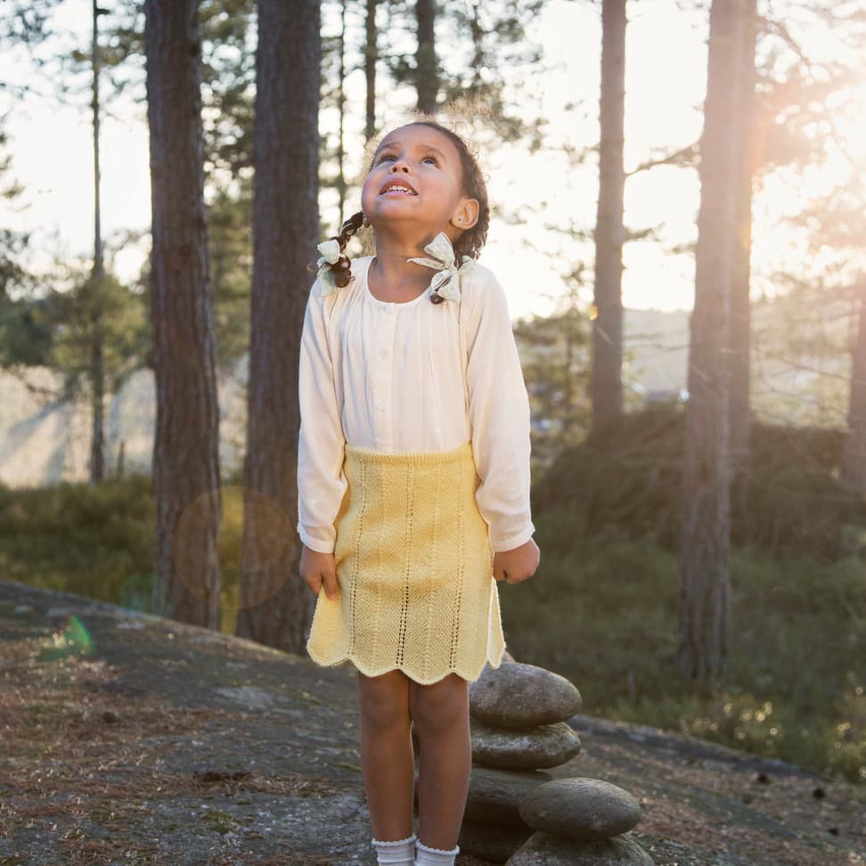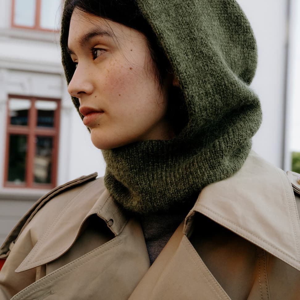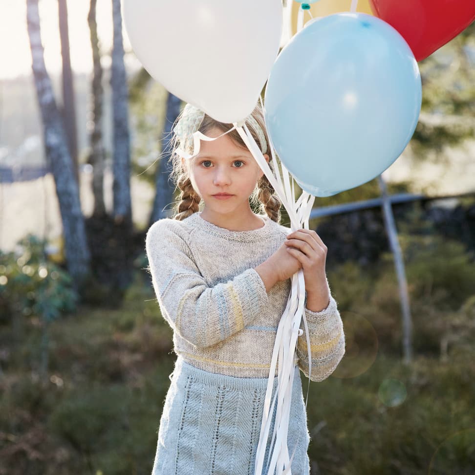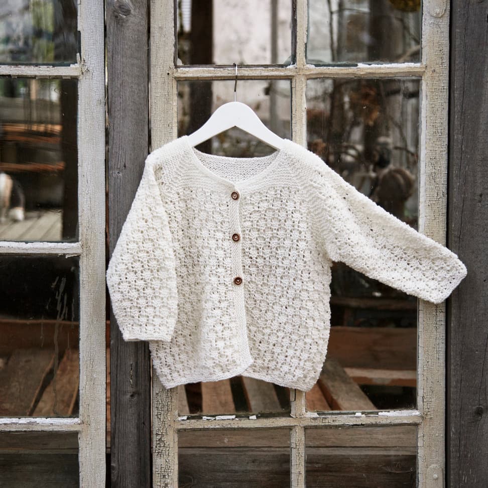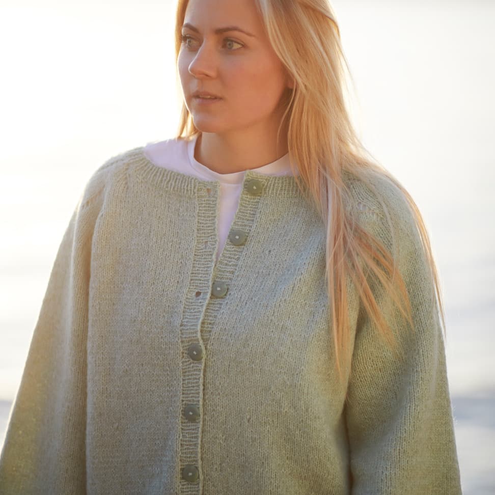Garnkombinasjoner og forslag til strikkefasthet (p): Husk å strikke prøvelapp. Lamull + Plum: 20 m = 10 cm (3,5) Lamull + Alpaca Silk: 20 m = 10 cm (3) Lamull + Plum x 2: 18 m på 10 cm (4) Lamull x 2 : 18 m = 10 cm (3,5) Lamull + Tumi: 17 m = 10 cm (5) Lamull x 2 + Plum: 16 m = 10 cm (4,5) Lamull + Alpakka Lin: 14 m = 10 cm (4,5) Garnalternativer: Babygarn Inca Pandora