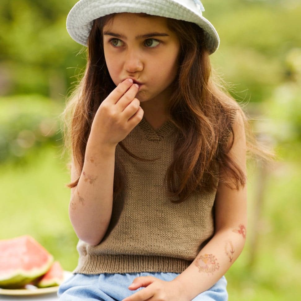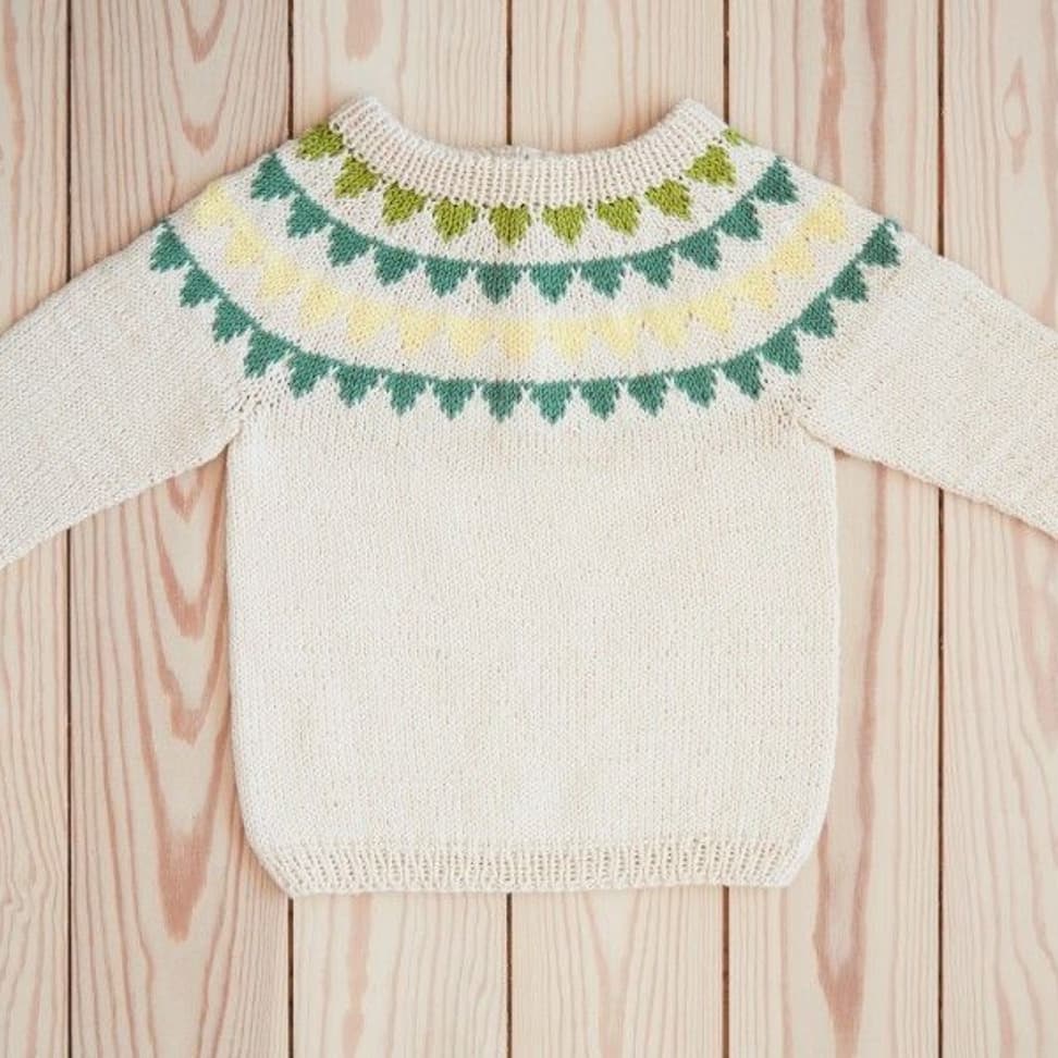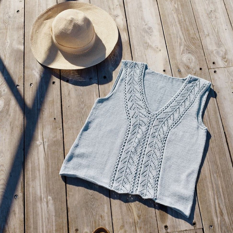 Garnkombinasjoner og forslag til strikkefasthet (p): Husk å strikke prøvelapp. Pandora x 2: 21 m = 10 cm (3,5) Garnalternativer: Lamull Inca Babygarn