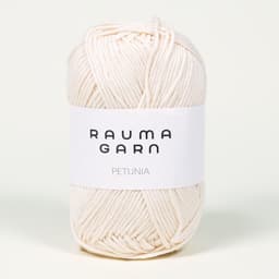 Petunia er et garn i 100% pima bomull, som er en av verdens fineste bomullsfibre. Det holder seg godt i bruk og kan vaskes i maskin. Petunia gir myke plagg som er behagelige å ha på. Petunia gjør seg godt både til plagg i sommergarderoben, og tilbehør som kurver, vesker og kluter. Egner seg til hekling.