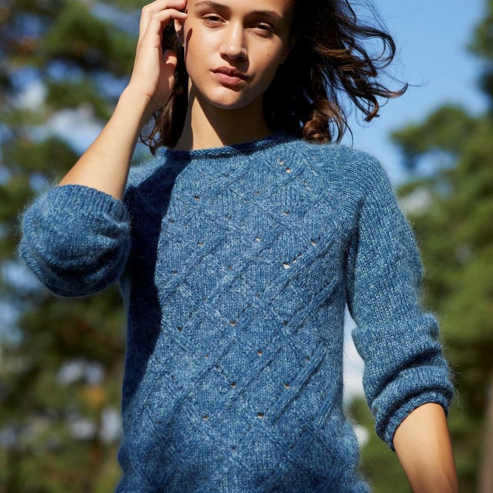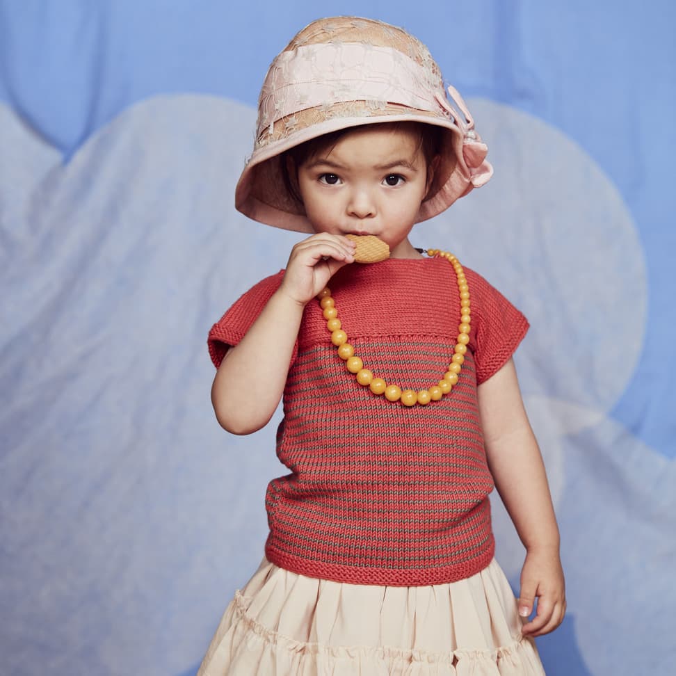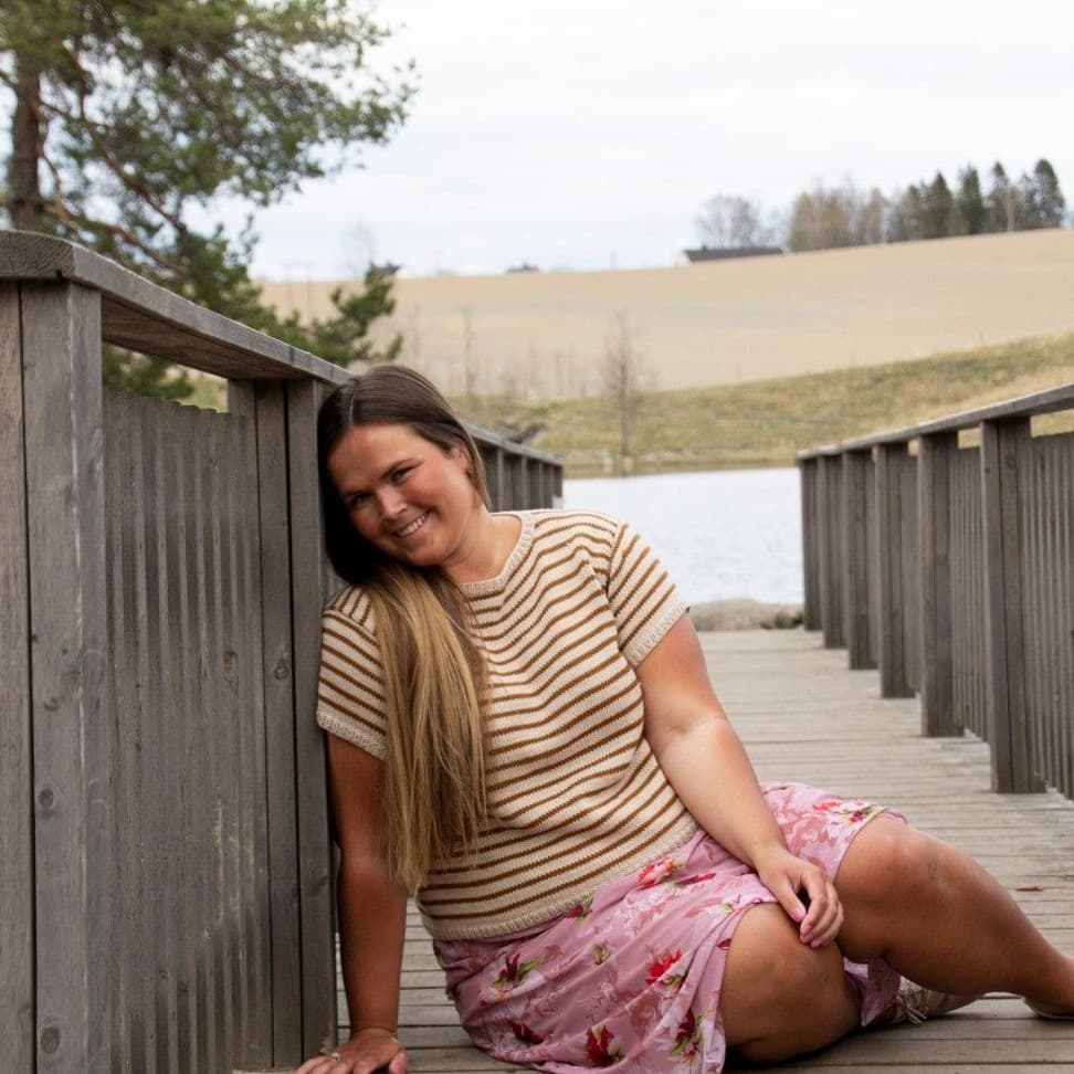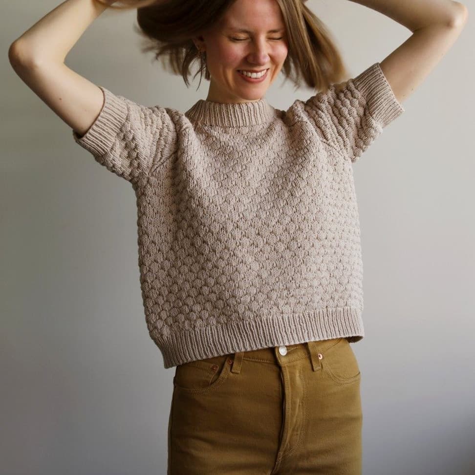 Garnkombinasjoner og forslag til strikkefasthet (p): Husk å strikke prøvelapp. Petunia + Plum: 20 m = 10 cm (4) Petunia x 2: 15 m = 10 cm (5) Garnalternativer: Finull, Tumi og Pelini