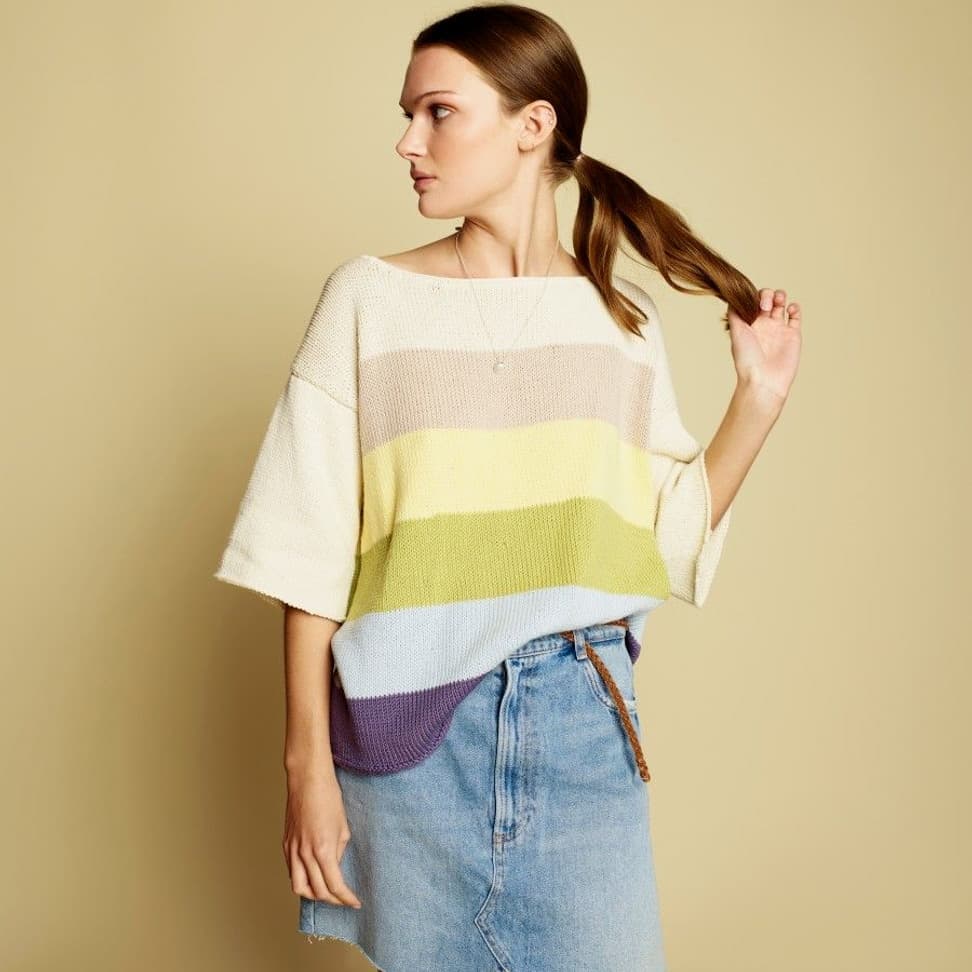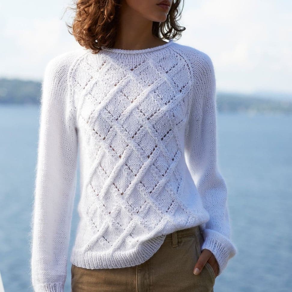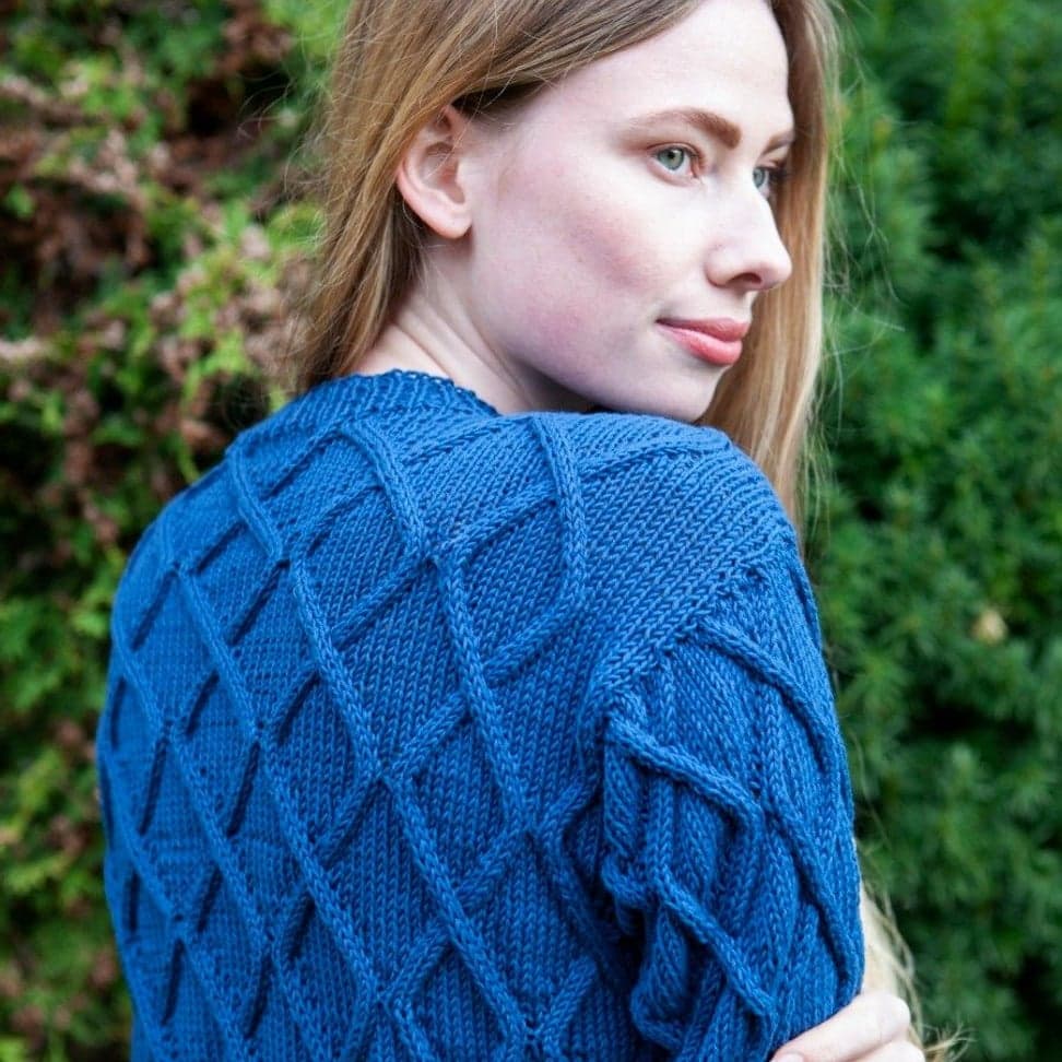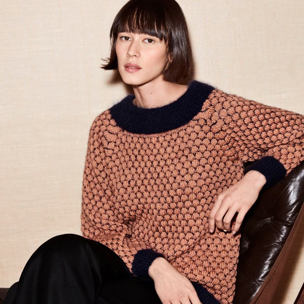 Garnkombinasjoner og forslag til strikkefasthet (p): Husk å strikke prøvelapp. Petunia + Plum: 20 m = 10 cm (4) Petunia x 2: 15 m = 10 cm (5) Garnalternativer: Finull, Tumi og Pelini