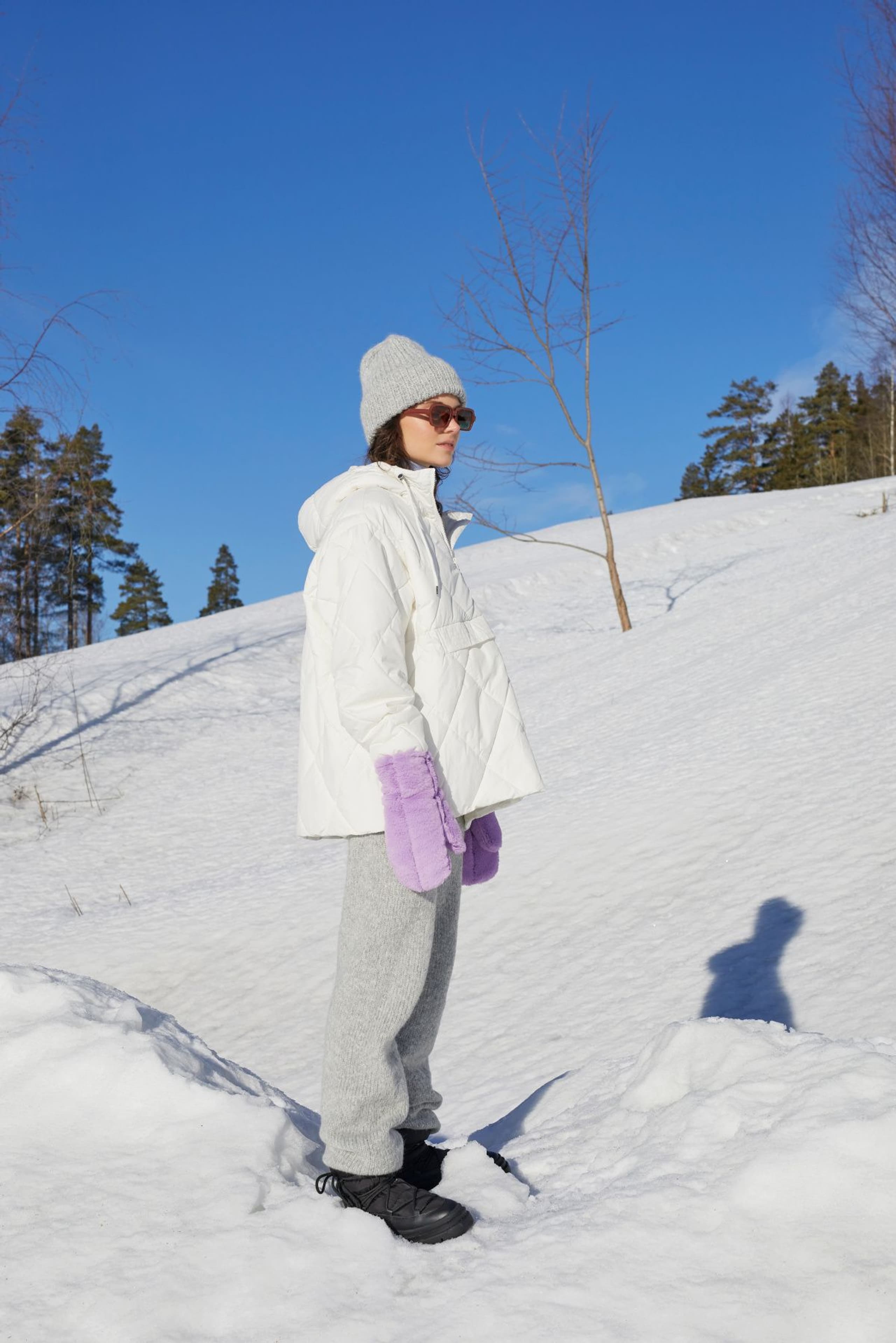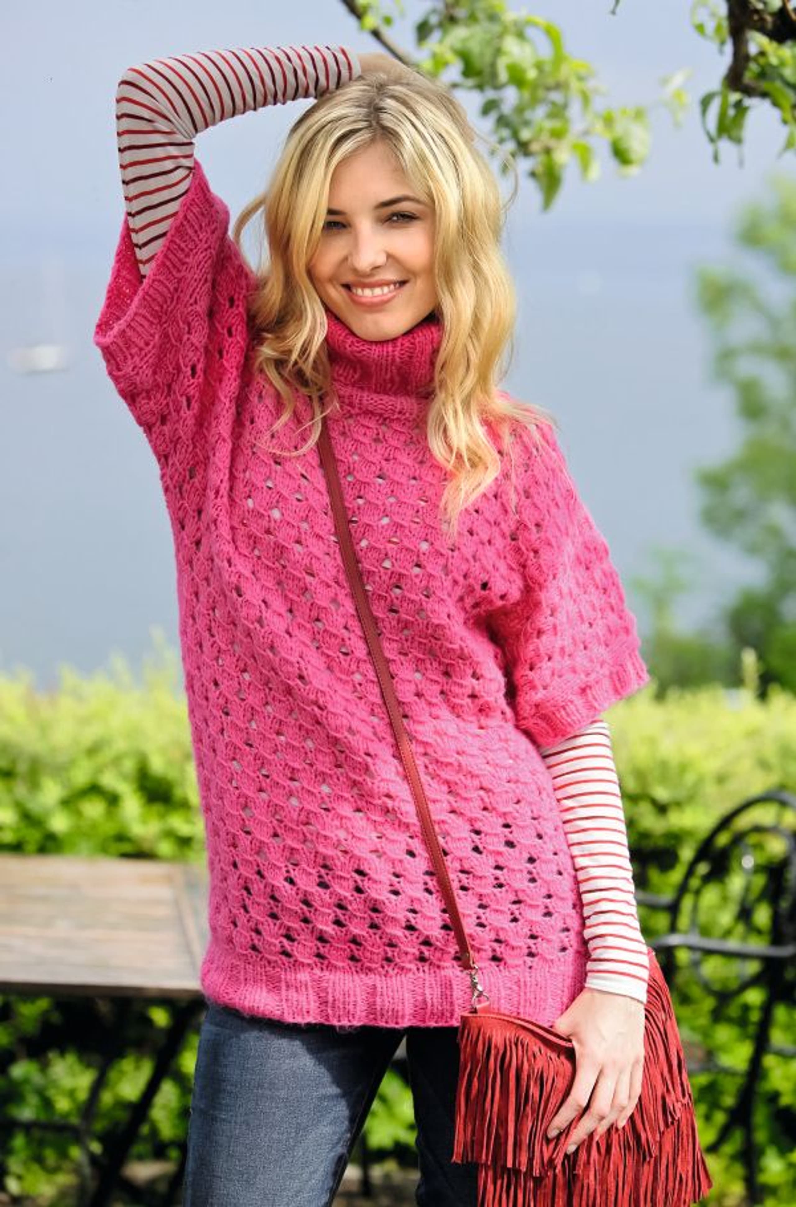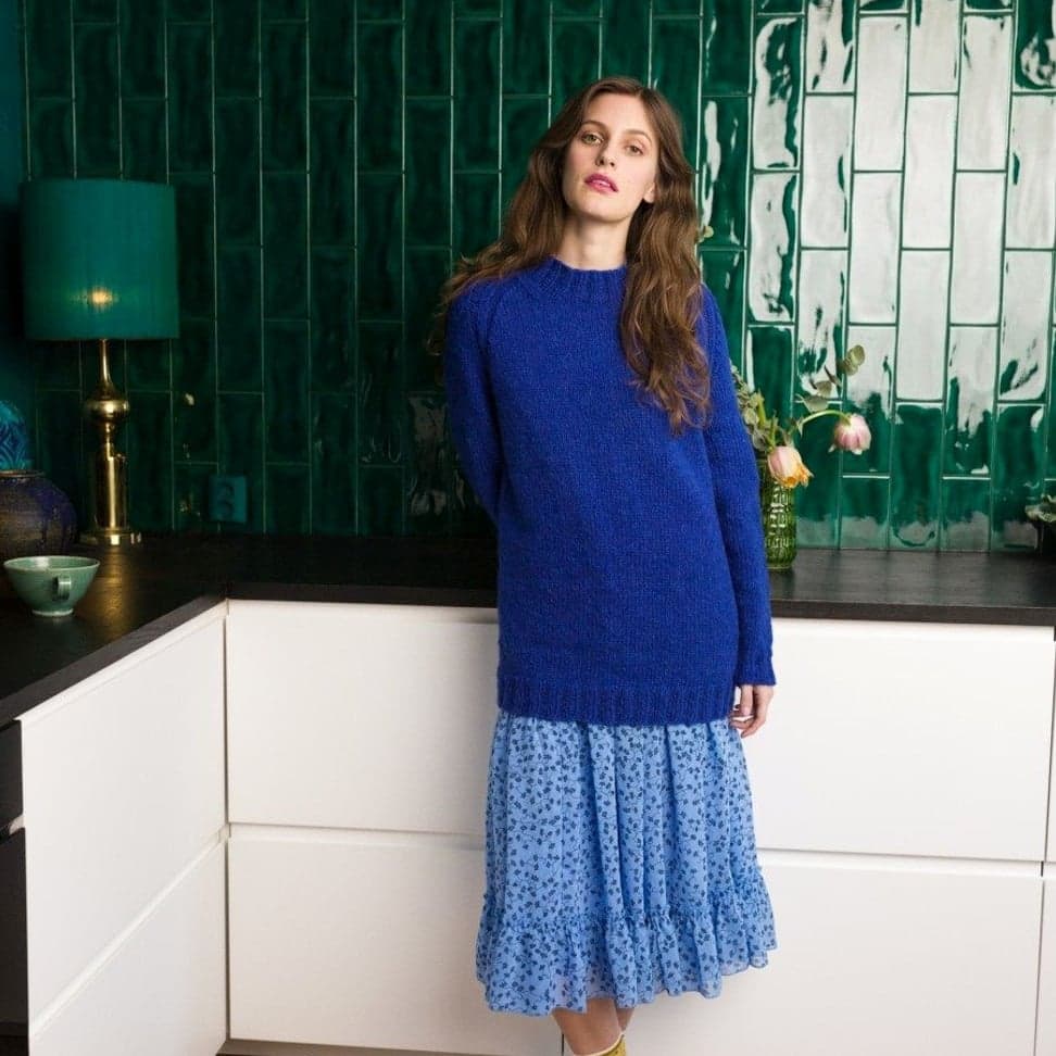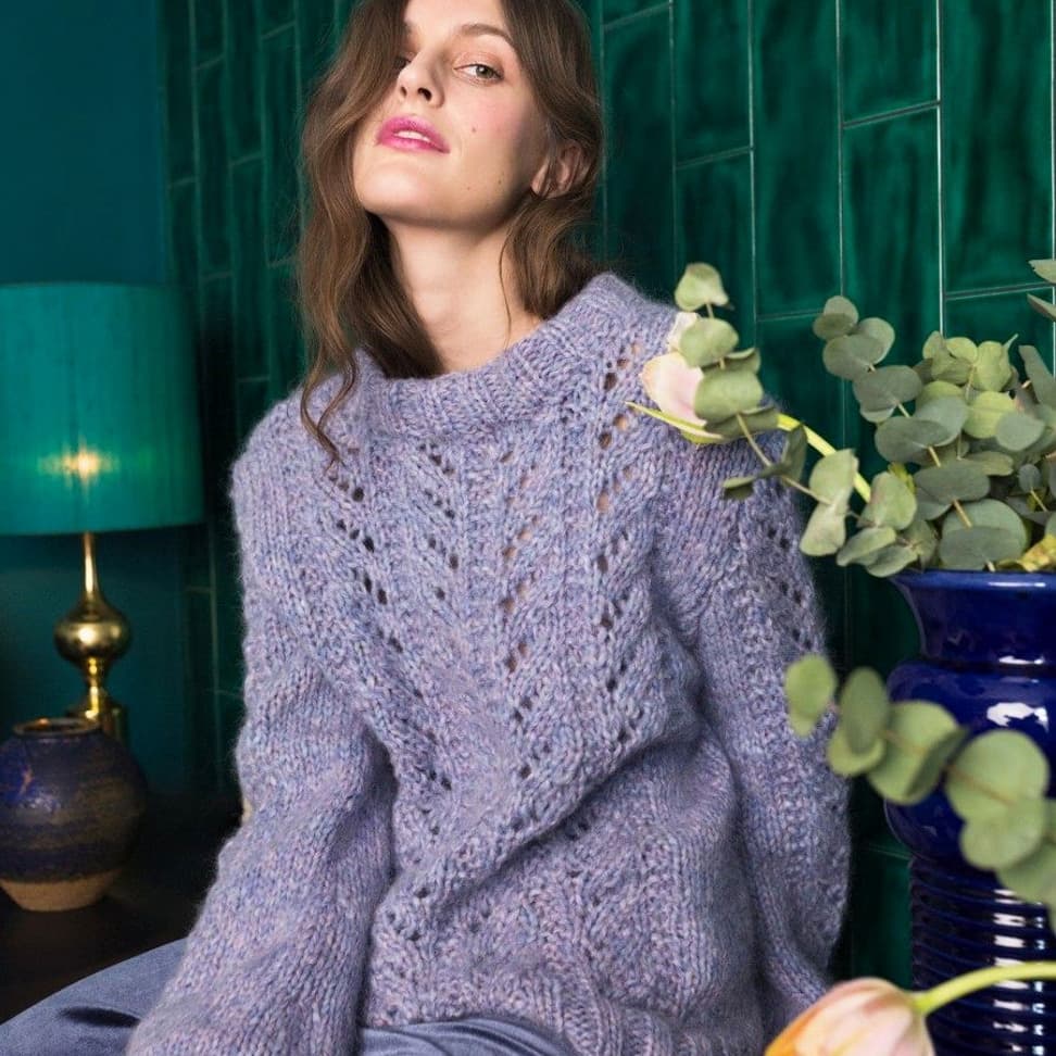 Garnkombinasjoner og forslag til strikkefasthet (p): Husk å strikke prøvelapp. Puno + Plum: 15 m = 10 cm (6) Puno + Mitu: 10 m = 10 cm (9) Garnalternativer: Vams