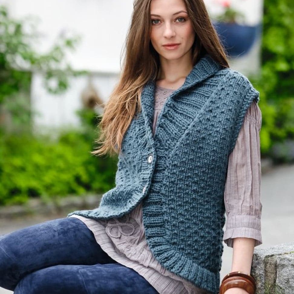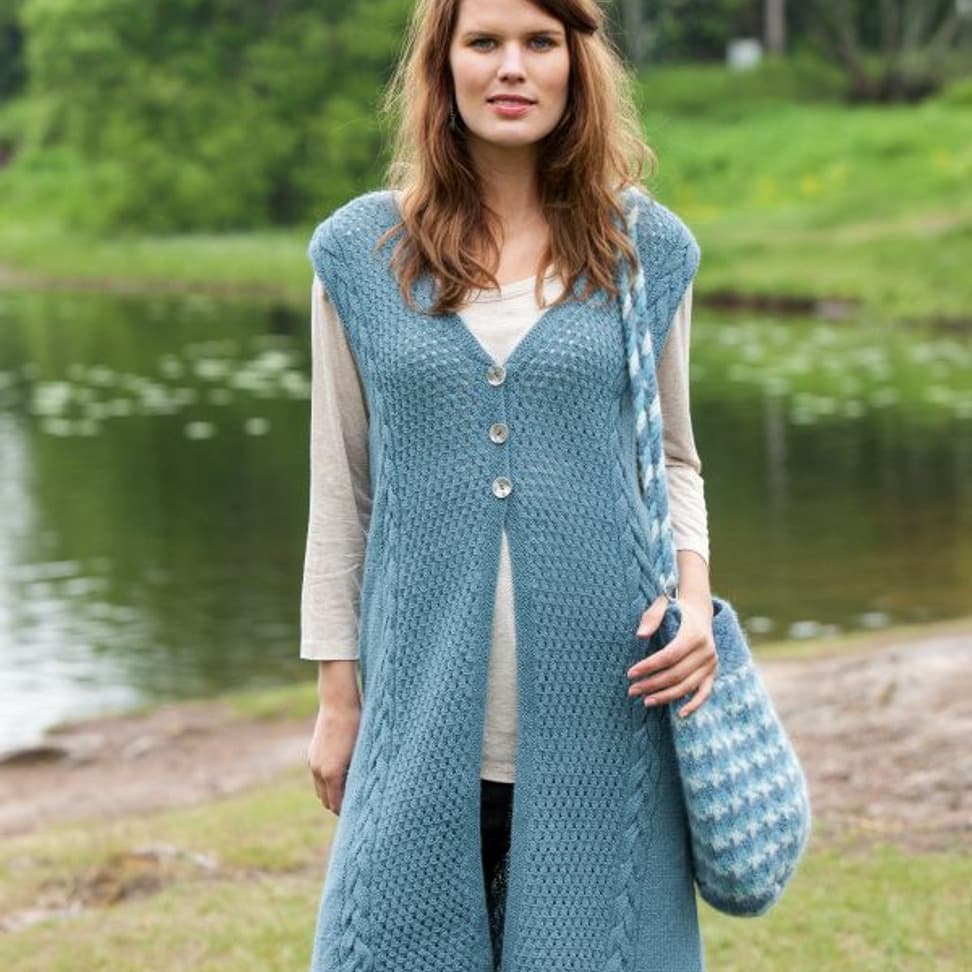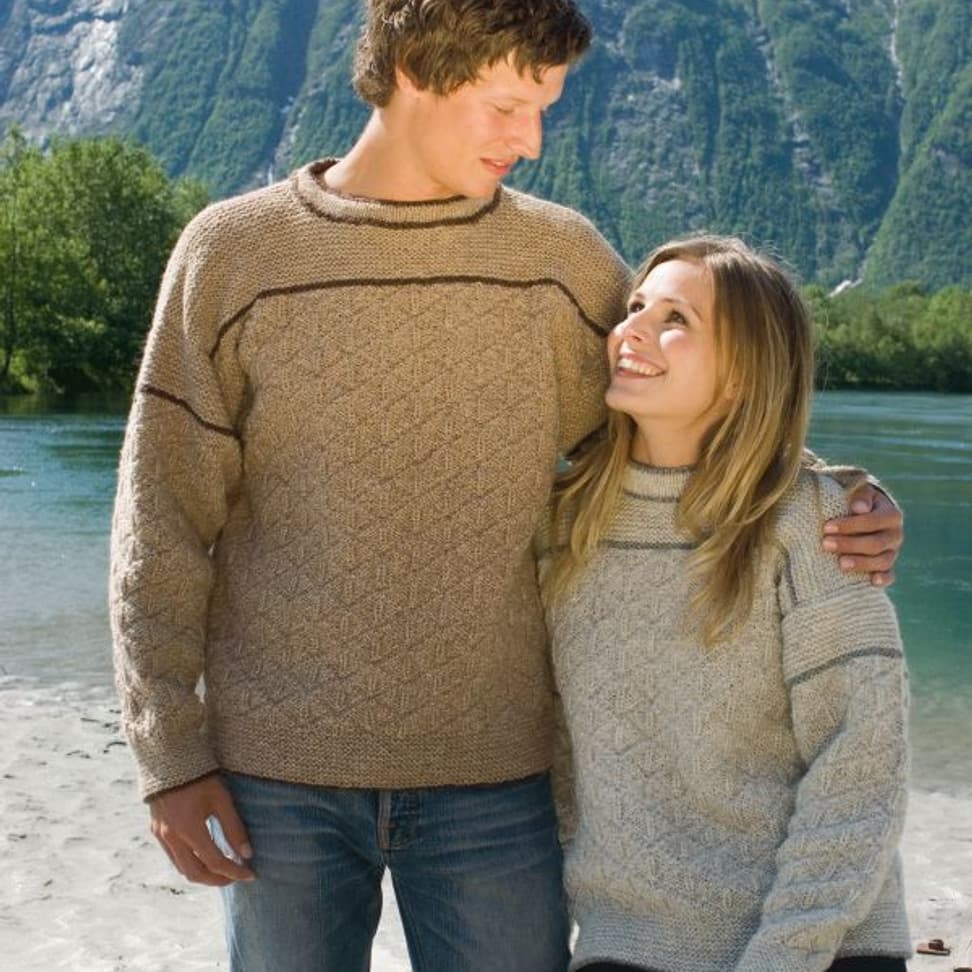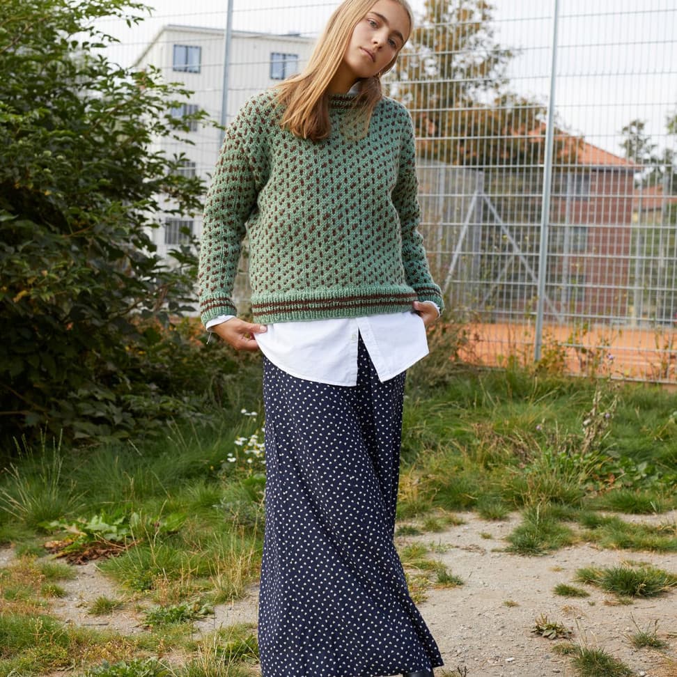 Garnkombinasjoner og forslag til strikkefasthet (p): Husk å strikke prøvelapp. Vams + Plum: 12 m = 10 cm (7) Vams + Alpaca Silk: 12 m = 10 cm (7) Garnalternativer: Puno Finull og Alpakka Lin Alpakka Lin x2