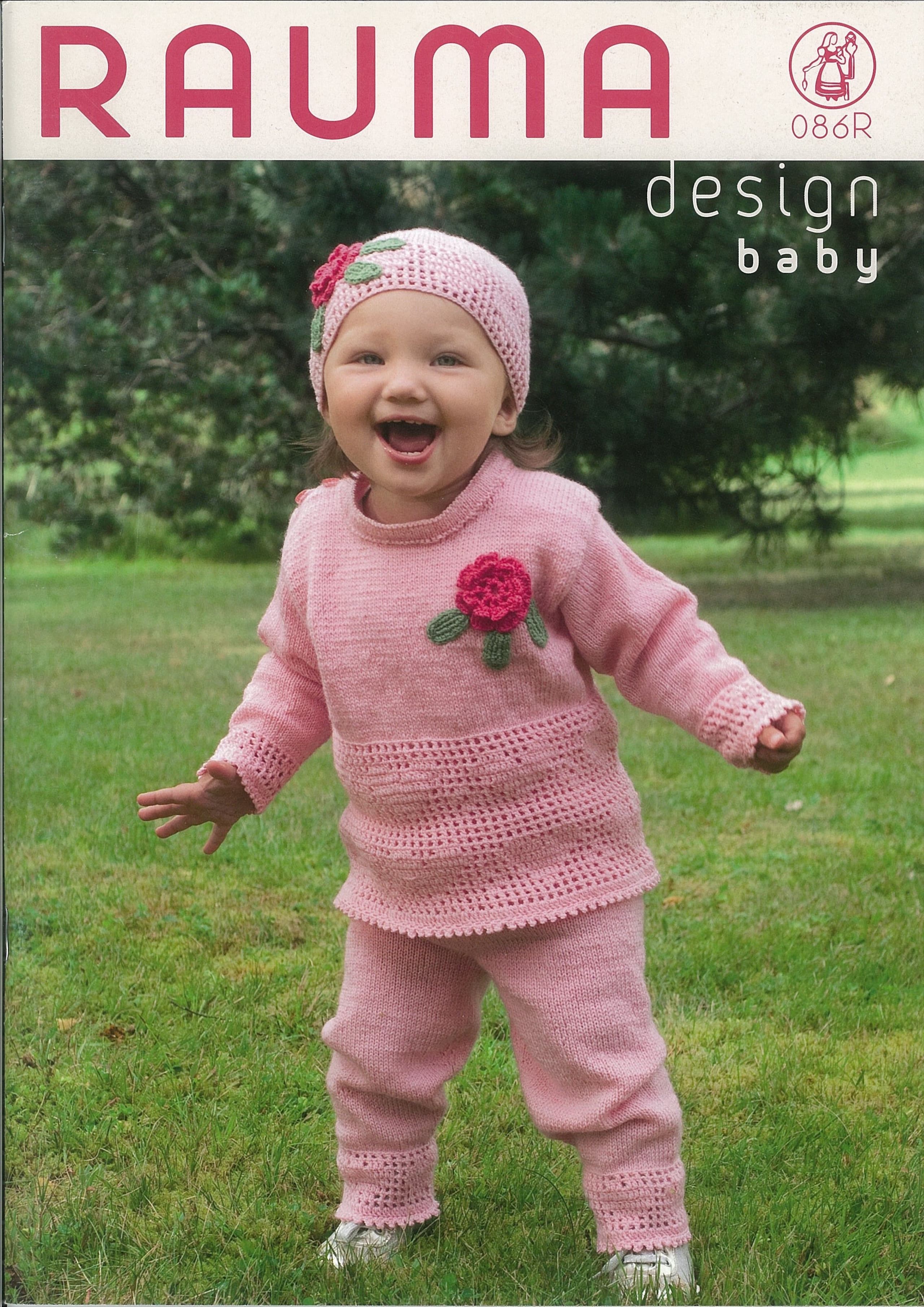 Lekker dåpskjole og andre plagg strikket i Baby Panda, Plum og Pillpi.