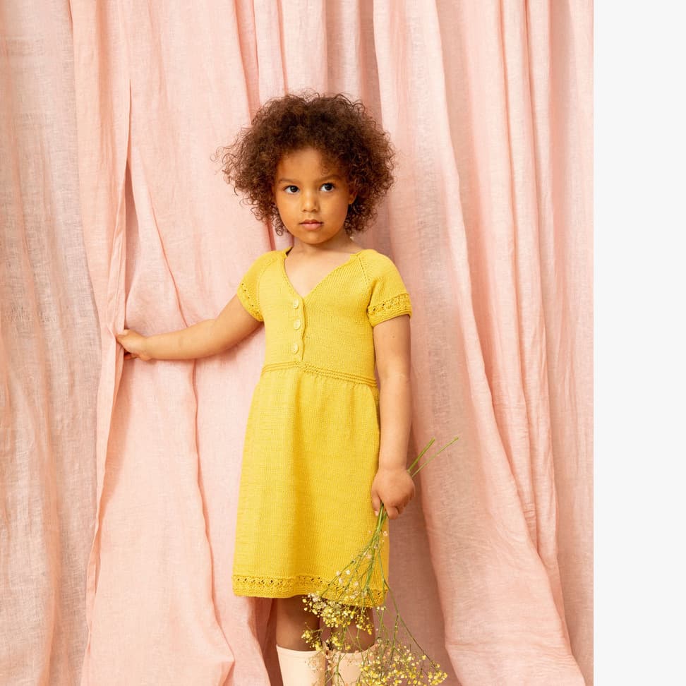 Sommeren er her! I dette heftet finner du en søt sommerkolleksjon til barn i størrelser fra 1-10 år. Her er kjoler, topper, shortser, skjørt, jakker og gensere. Kolleksjonen er strikket i det tynne bomullsgarnet Pandora. Pandora er laget av 100% pima bomull, en av verdens fineste bomullsfibre. Kvaliteten gir myke, lette og sommerlige plagg som holder seg godt både i bruk og vask.