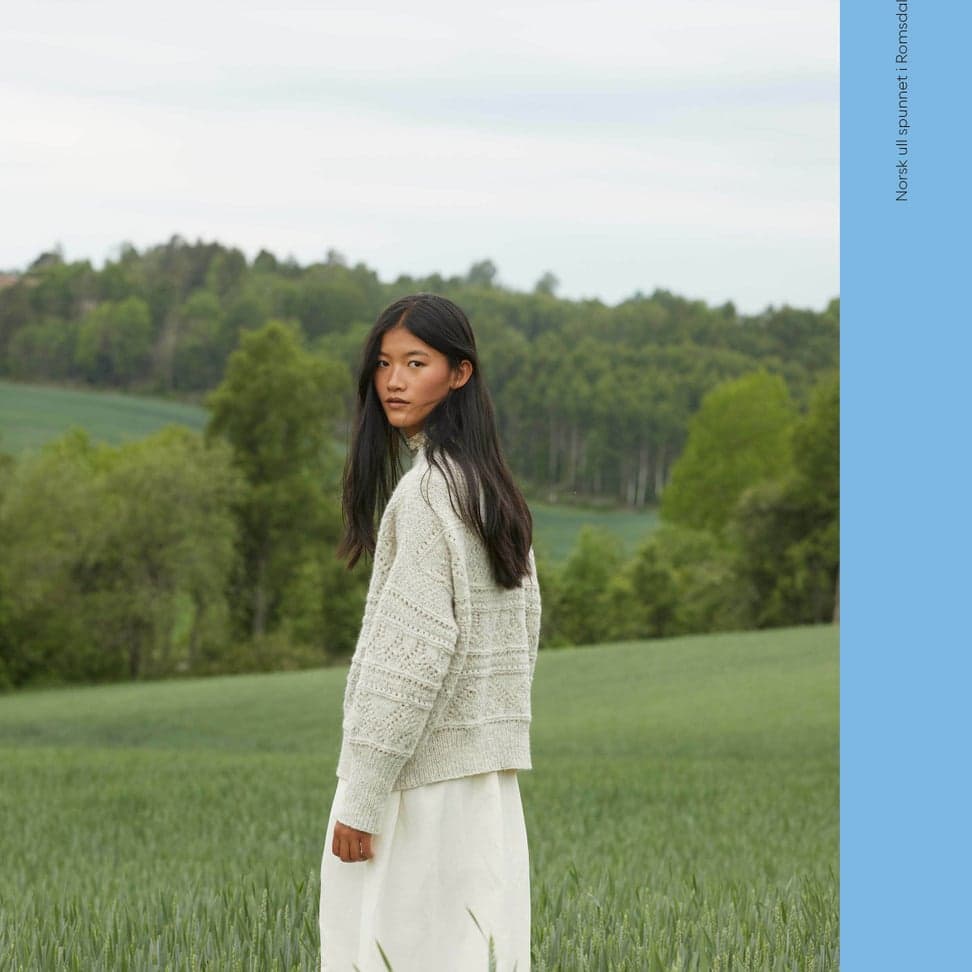 I dette heftet presenterer vi en vakker kolleksjon av deilige høstfavoritter til dame. Plaggene er strikket i én tråd Finull sammen med én tråd Alpaca Silk. Finull spinner vi av 100% norsk ull på fabrikken vår i Romsdalen. Garnet er lett og luftig og gir plagg som holder fasongen år etter år. Alpaca Silk er et mykt, tynt og pusete garn av alpakka og silke. Kombinasjonen av de to kvalitetene gir en helt unik følelse av både mykhet og struktur som vi håper du får lyst til å prøve! Kolleksjonen inneholder basisplagg med spennende strukturer og moderne passform. Her finner du Dilon strukturgenser, Mynte genser med border i hullmønster, Sesam raglangenser med høy hals, Mejram vest med v-hals og knapper, Vinge jakke med dobbelstrikket halskant, samt Felice ribbelue og skjerf i striper.