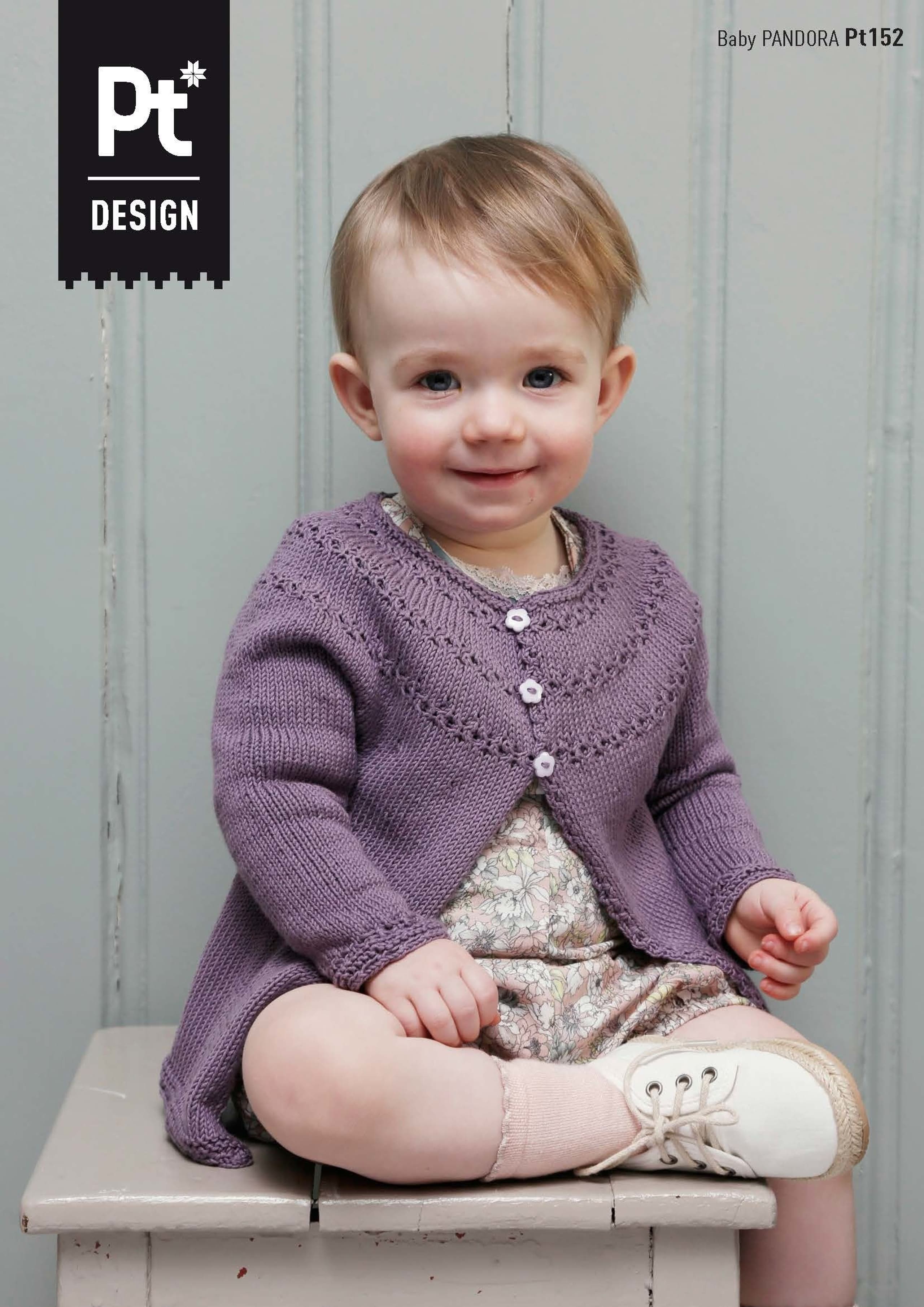 I oppskriftene i dette heftet bruker vi bomullsgarnet Pandora. Pandora er naturlig halvblankt og mykt og det er veldig godt å jobbe med. Det holder seg fint i bruk og etter vask. Det egner seg altså perfekt til Babyplagg.