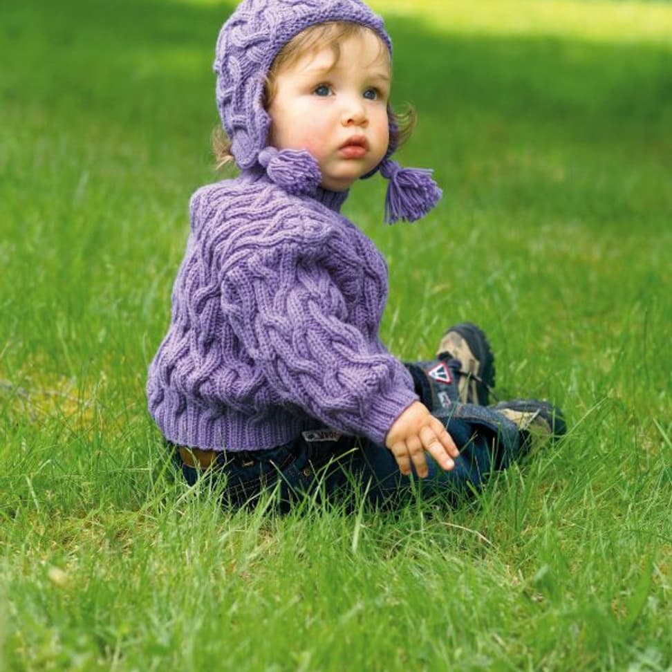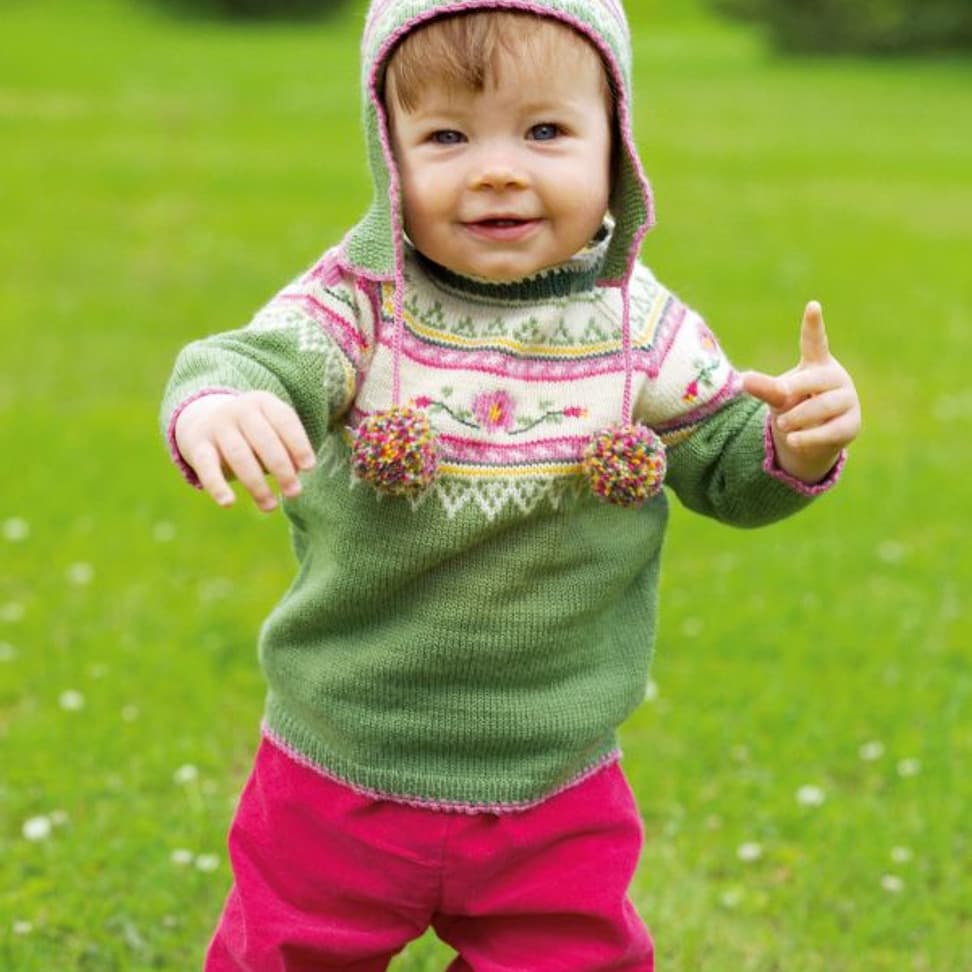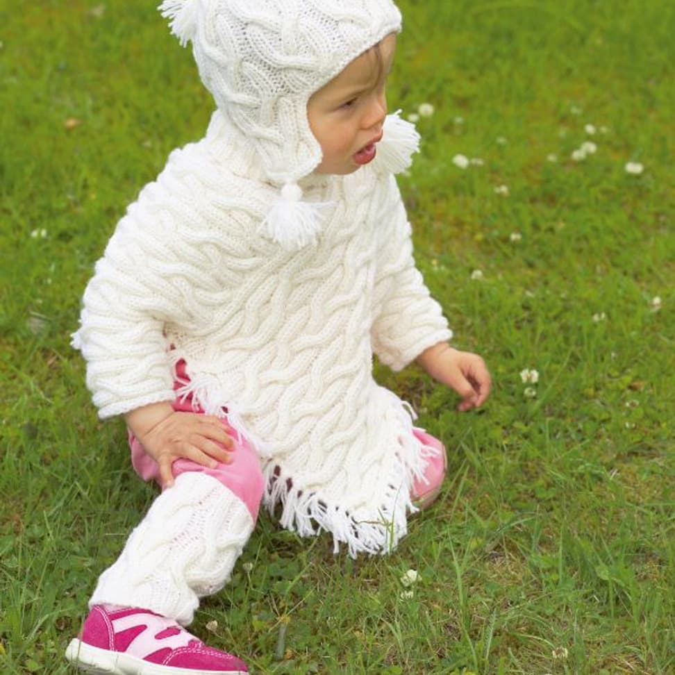 Jakke med hette, genser, lue, leggvarmere og poncho med ermer