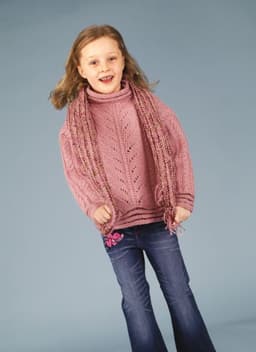 Genser med hull-og flettemønster og skjerf