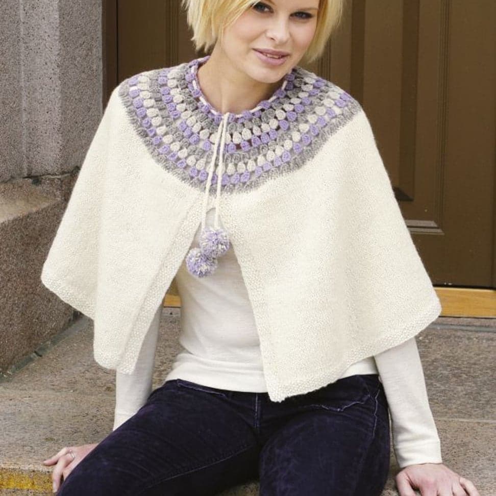 Halvlang cape, kort cape med eller uten splitt, lue og votter