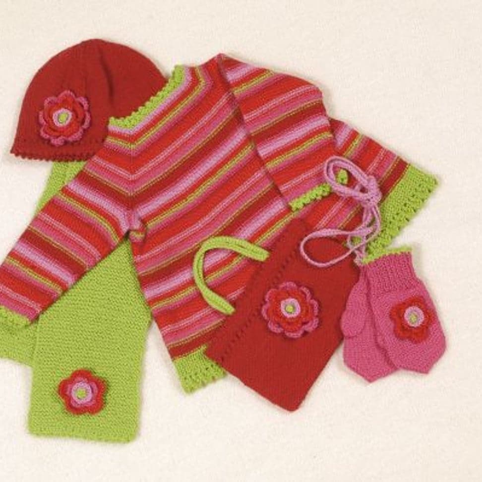 Kjolegenser, lue, votter, skjerf og veske