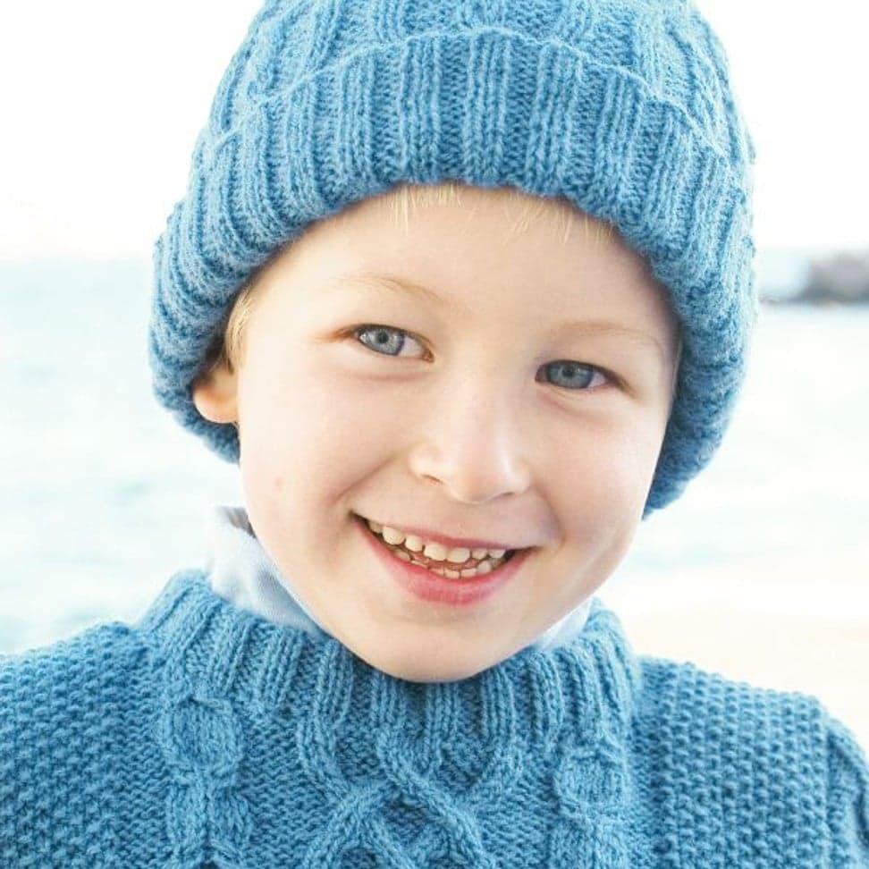 Genser, lue og leggvarmere med hullmønster