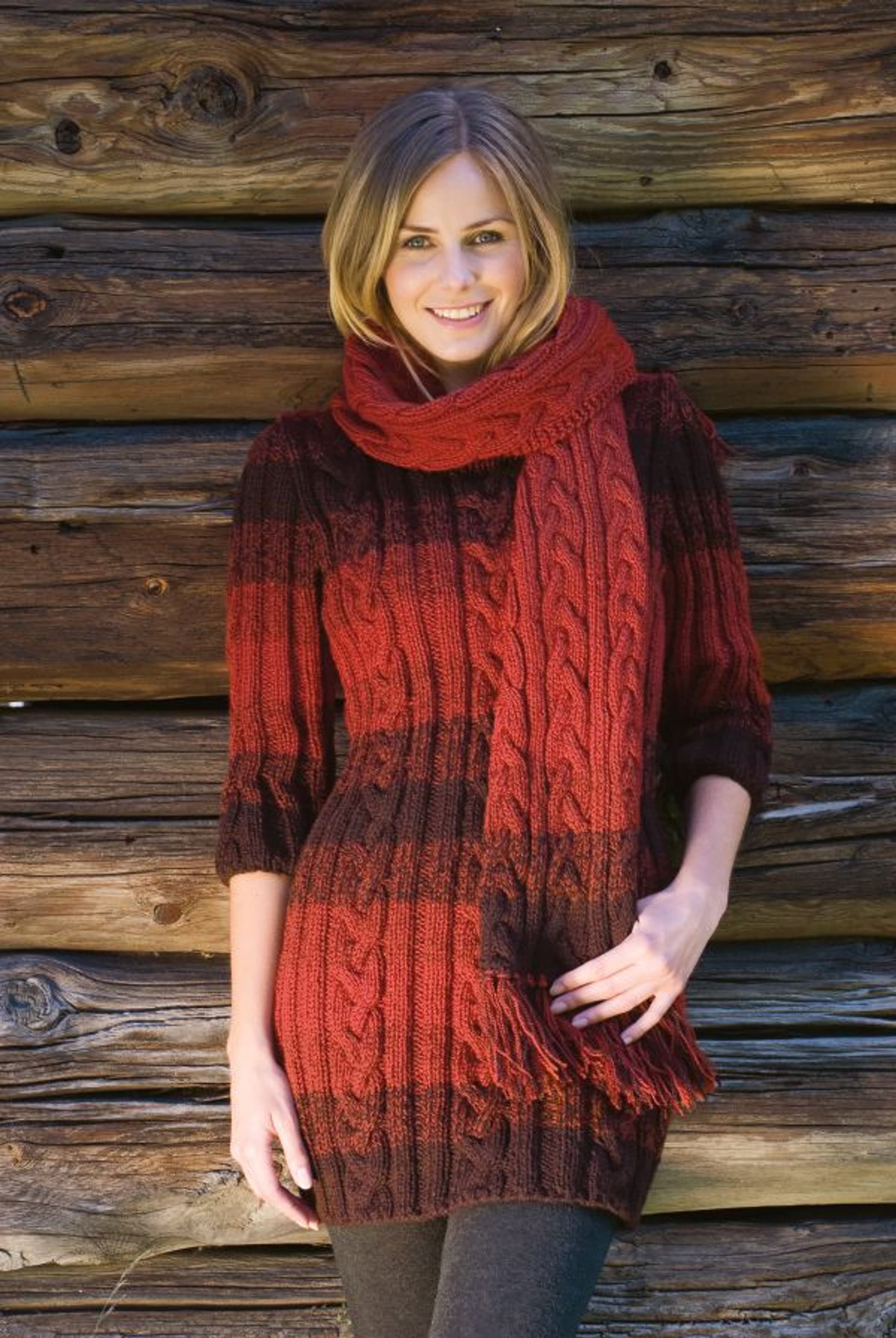 Kort og lang genser med flettemønster