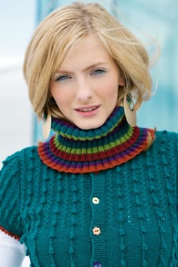 Jakke, genser og hals strikket i Rauma Finullgarn