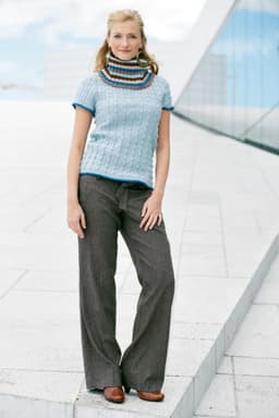 Kort genser med hette. Lang genser med firkantet halsåpning. Skjerf