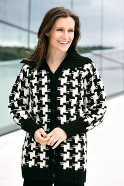 Kort genser med hette. Lang genser med firkantet halsåpning. Skjerf