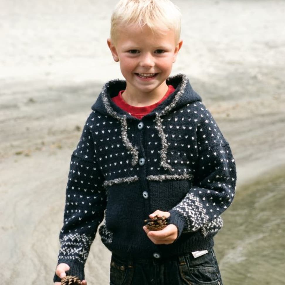 Genser med rundt bærestykke og lue