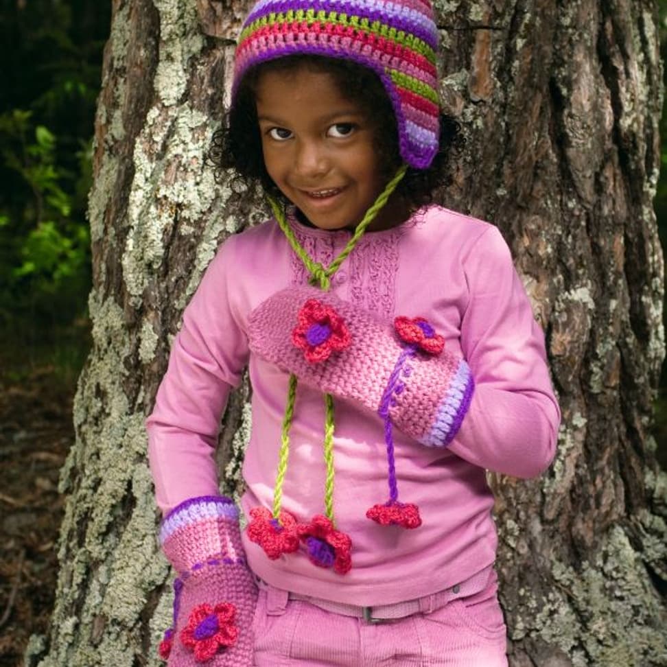 Heklet lue, skjerf, votter og veske