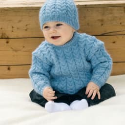 Genser og lue med flettemønster