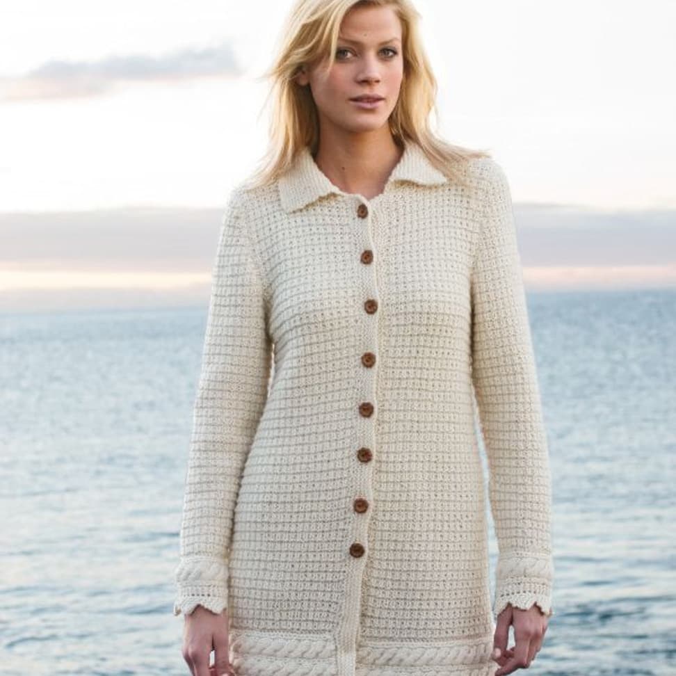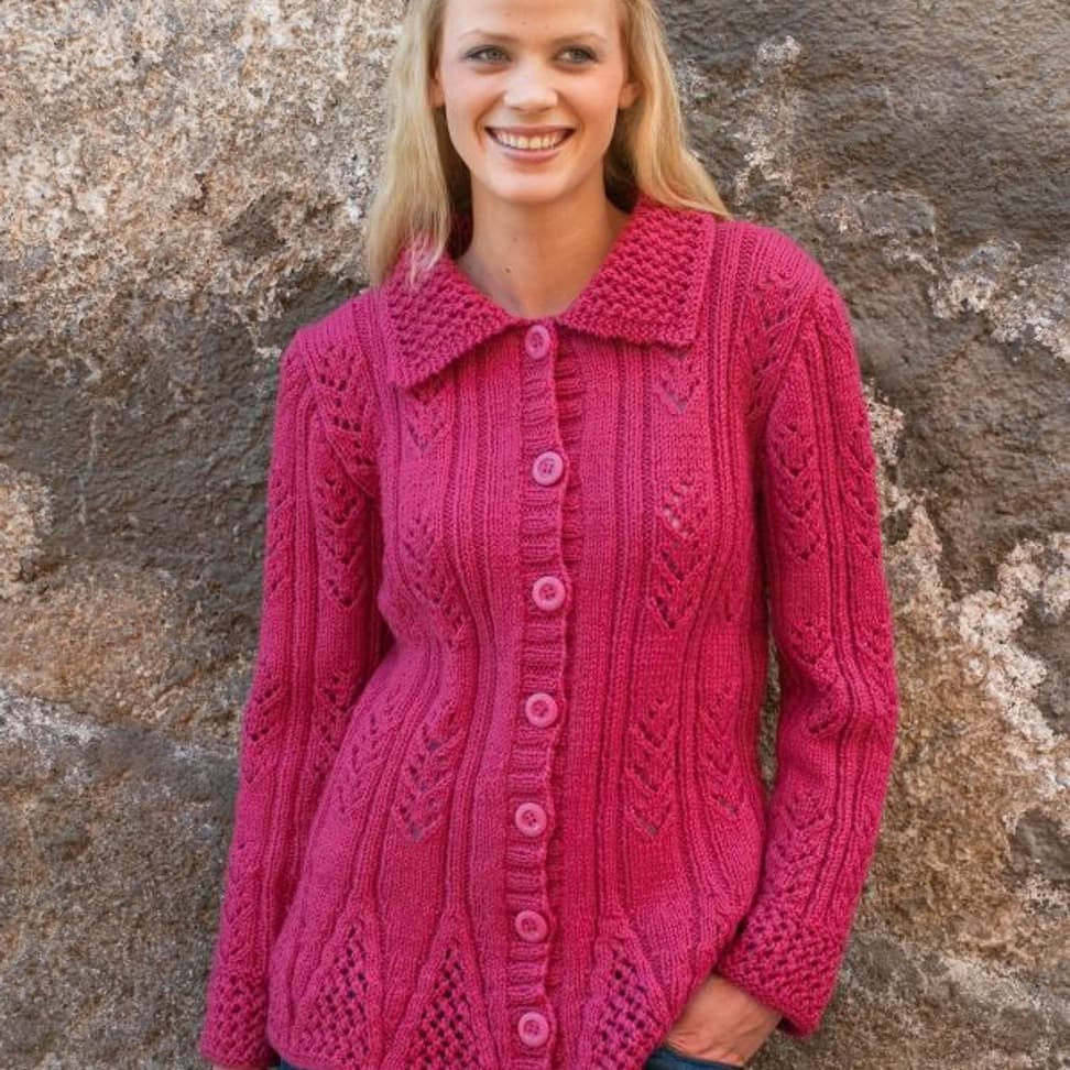 Jakke med flettemønster og strukturstrikk