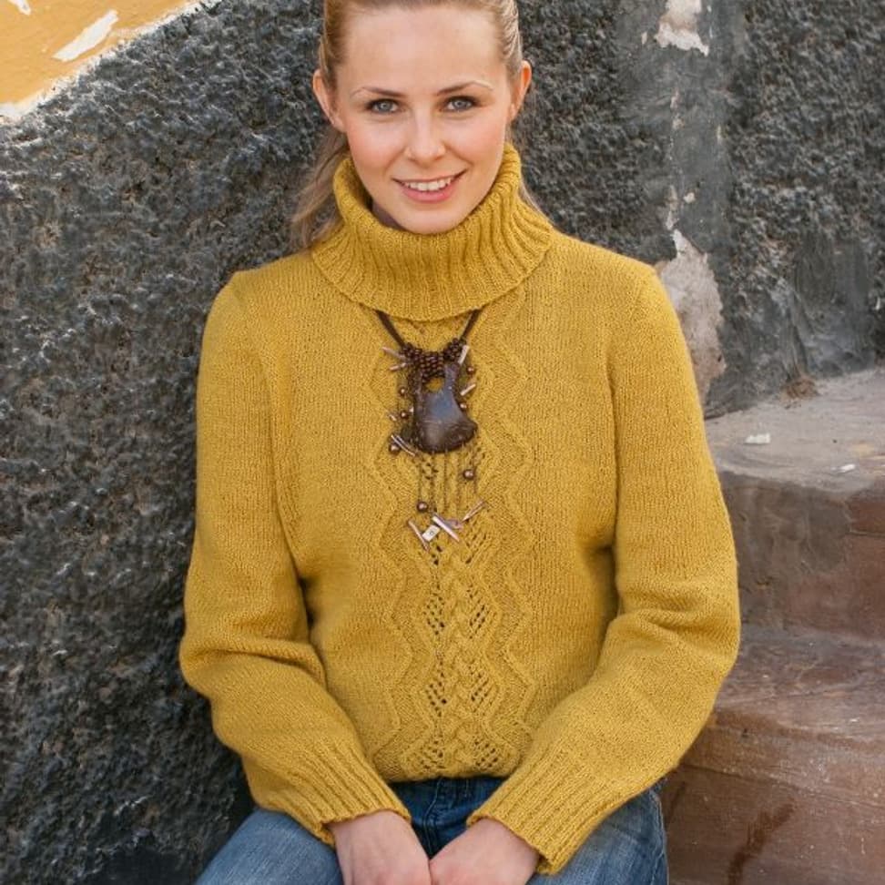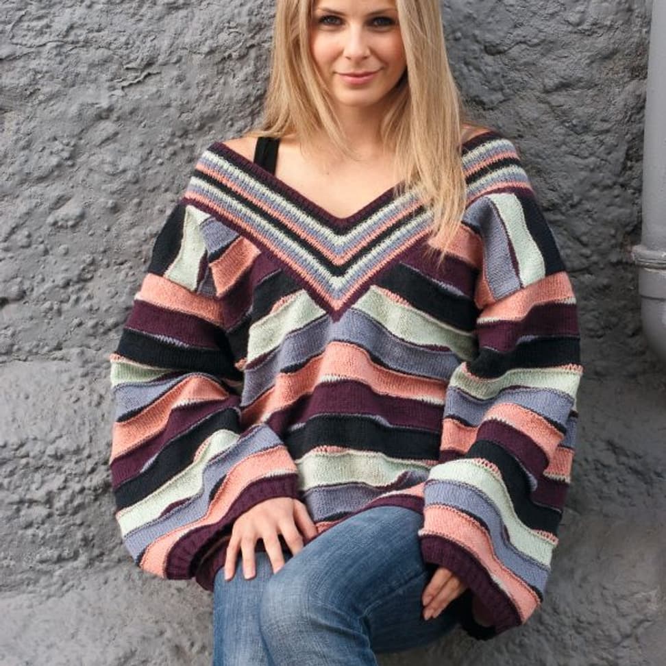 Genser med "bølgemønster", med høy hals eller V-hals