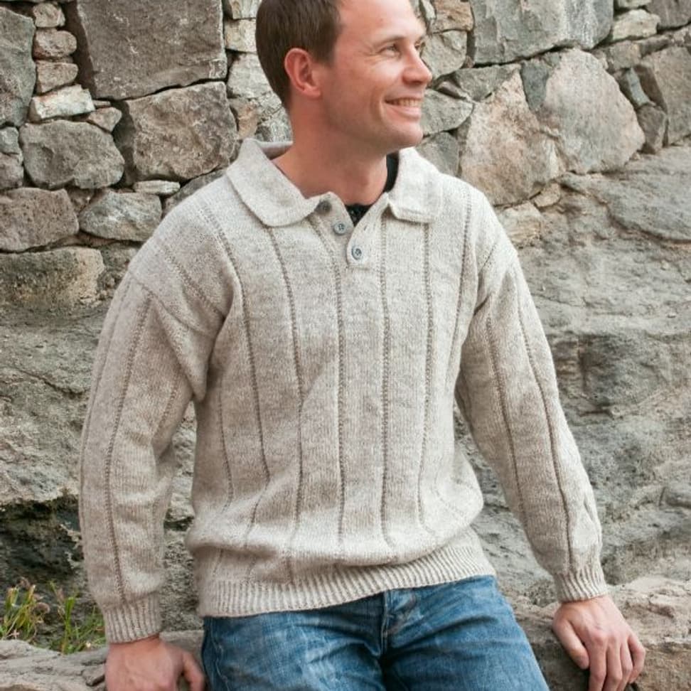Genser med knappestolpe og krage, eller rund hals