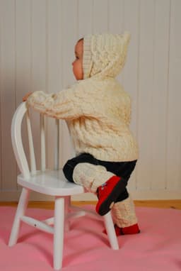 Jakke med hette, genser, lue og leggvarmere