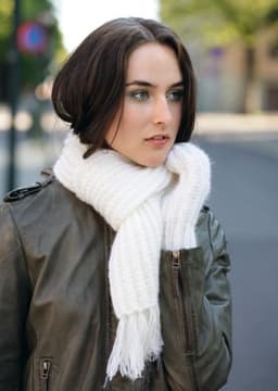 Jakke, gensere og topp med fletter og striper, lue og votter
