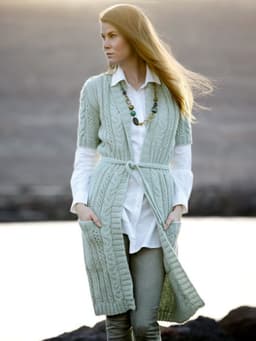 Damejakke med strukturstrikk og fletter, med hette eller halskant