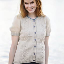Damejakke med strukturstrikk og fletter, med hette eller halskant