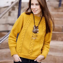 Damejakke med strukturstrikk og fletter, med hette eller halskant
