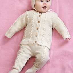 Stripet, kortermet genser med rundt bærestykke, og lue