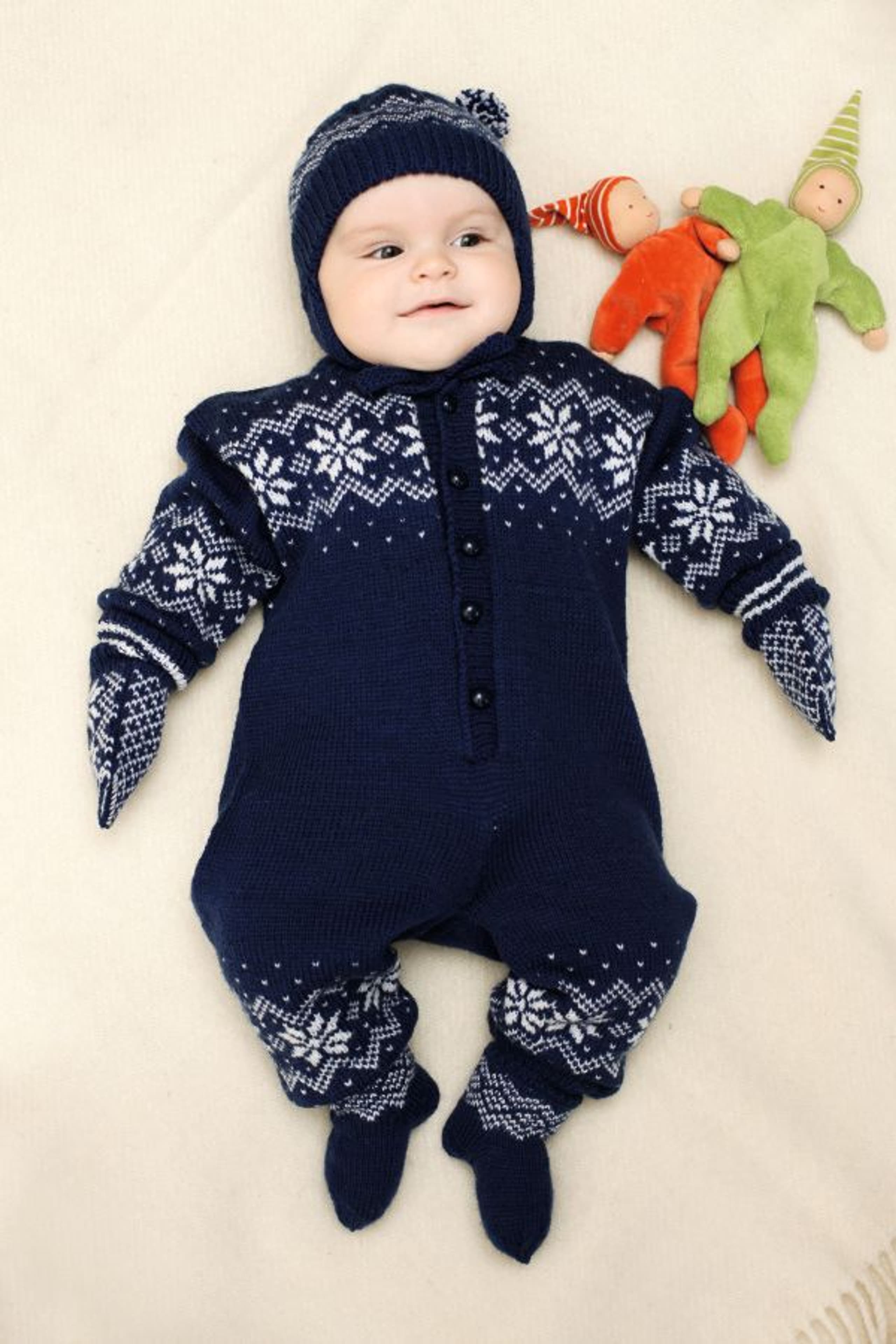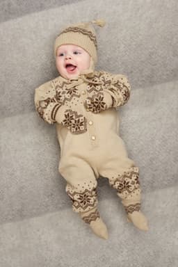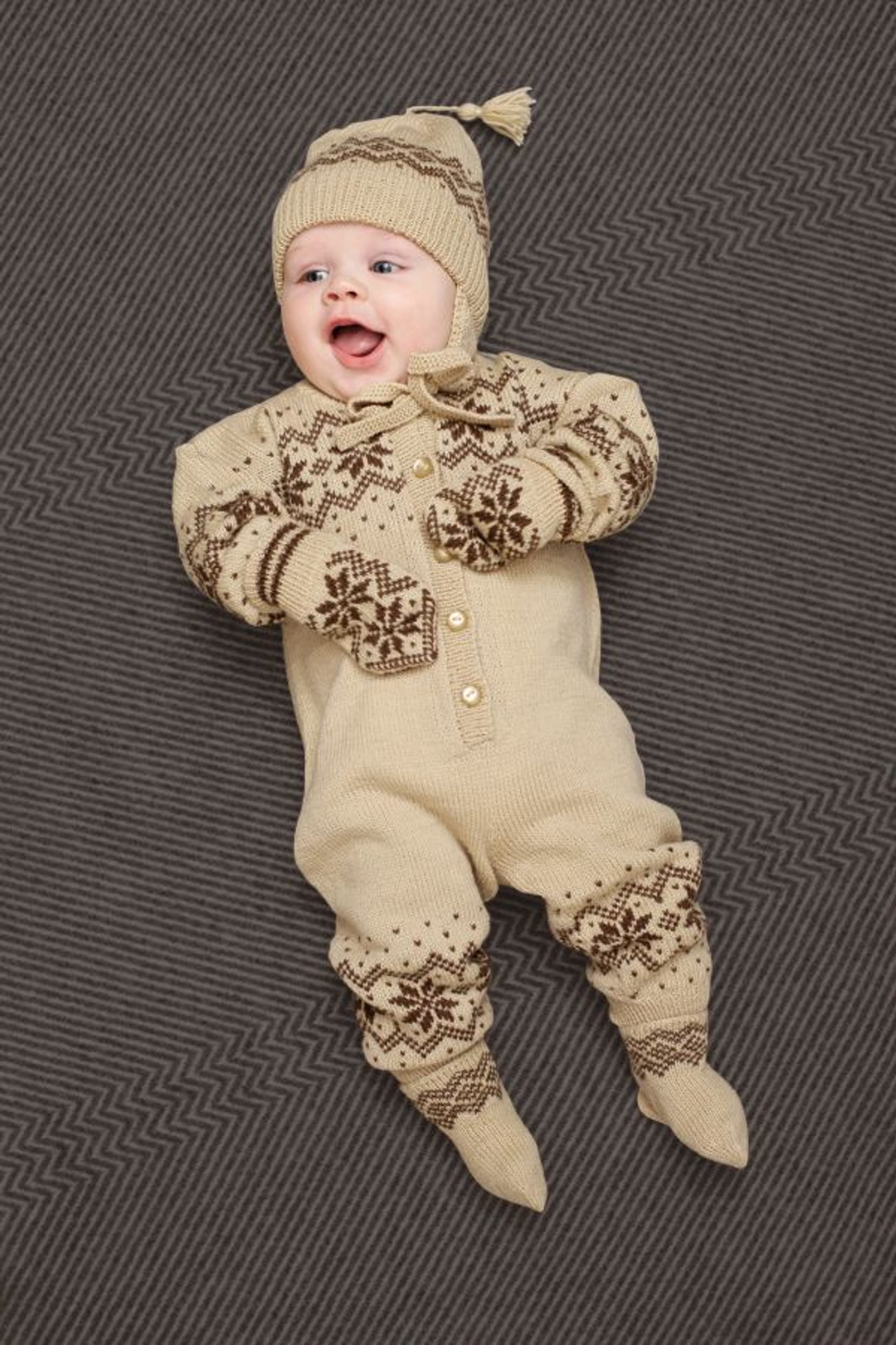 Genser, lue og bukse med flettemønster
