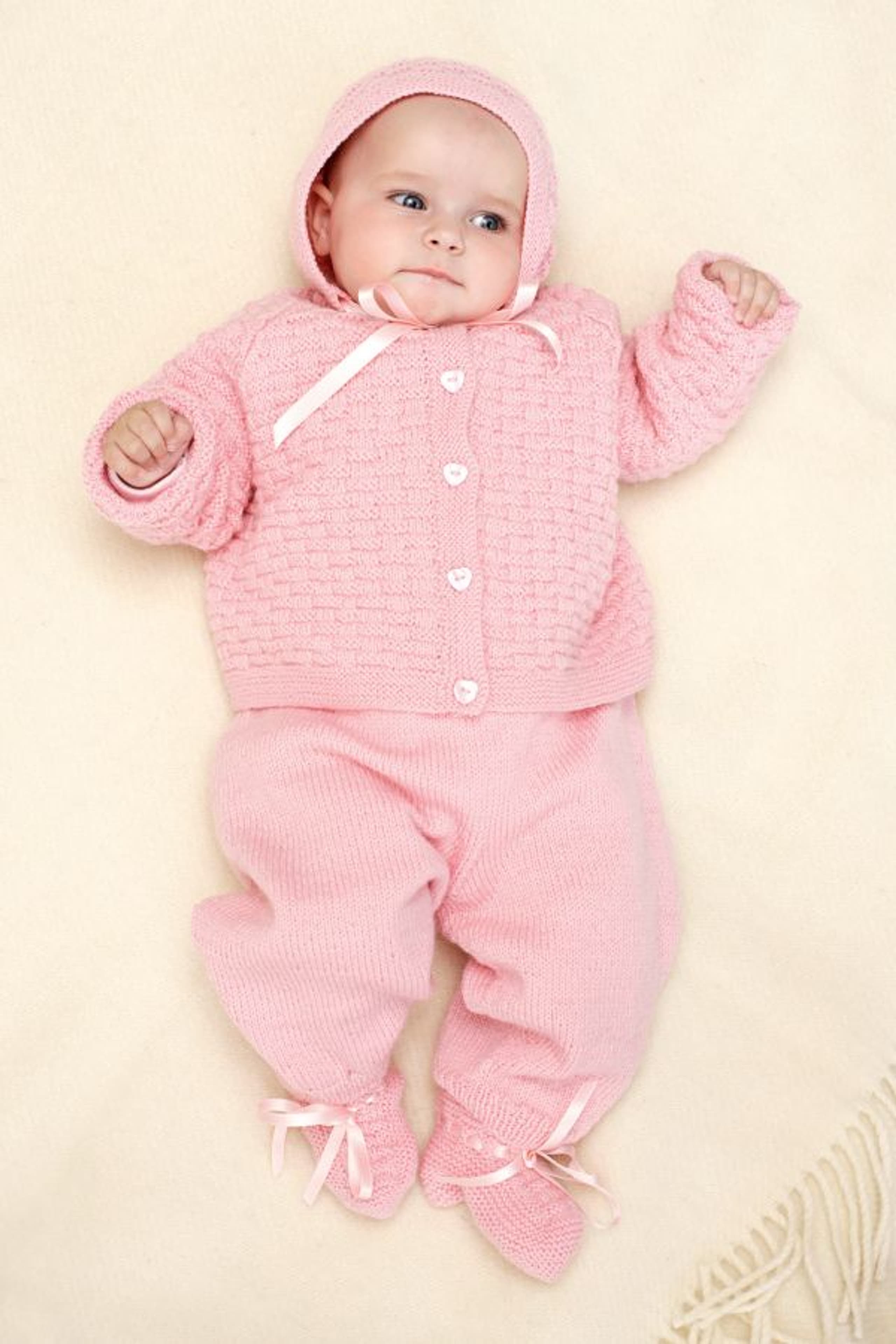 Genser, lue og bukse med flettemønster