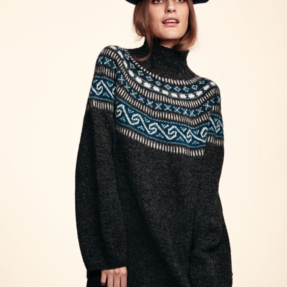 Genser strikket i Rauma 3 tr. Strikkegarn. Denne er litt krevende å strikke på skulderpartiet.