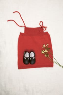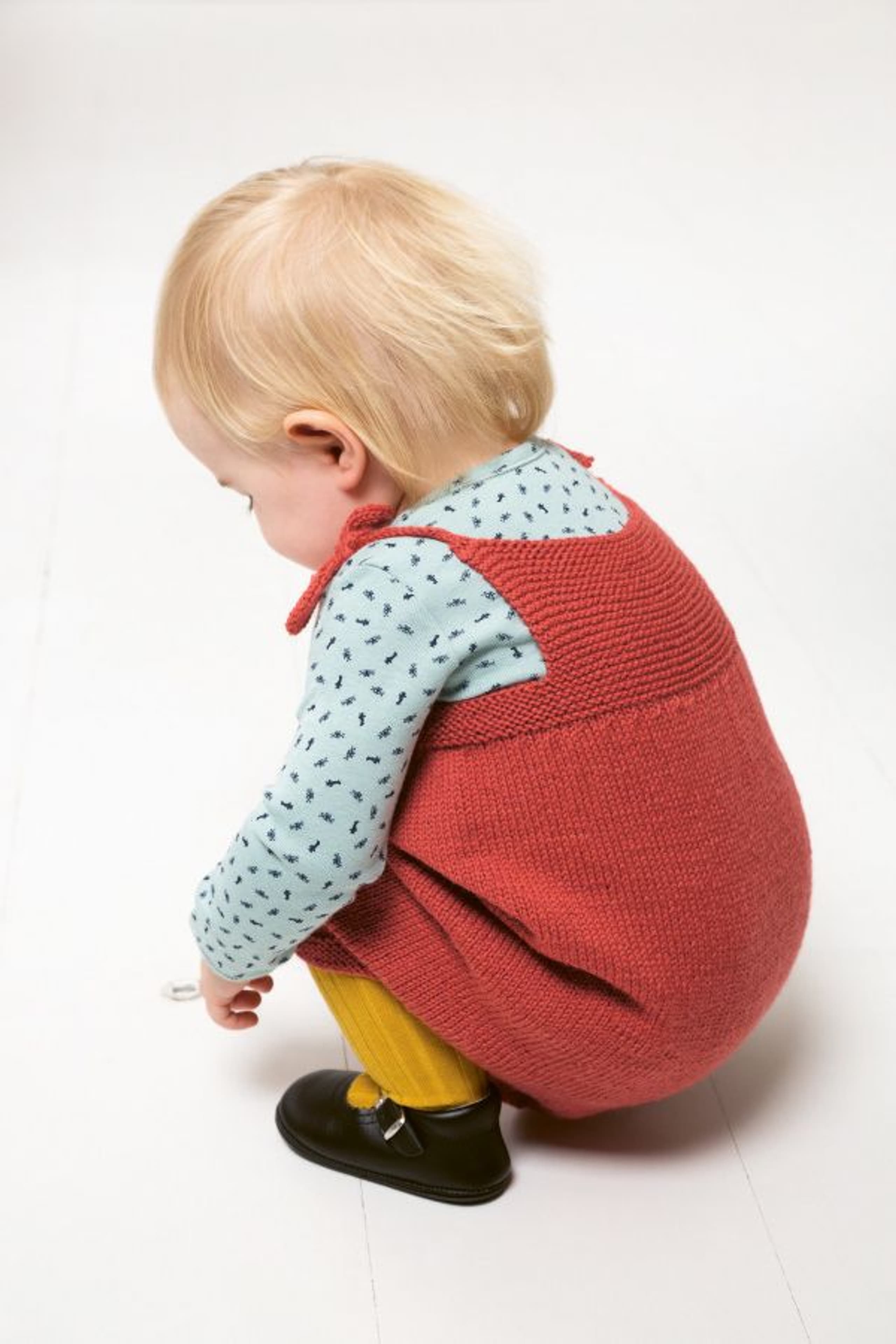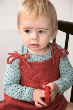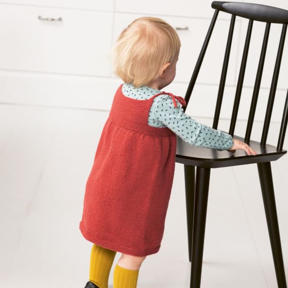 Lettstrikka kjole i Baby Panda. Alternativt kan man bruke Inca, Lamull eller Pandora