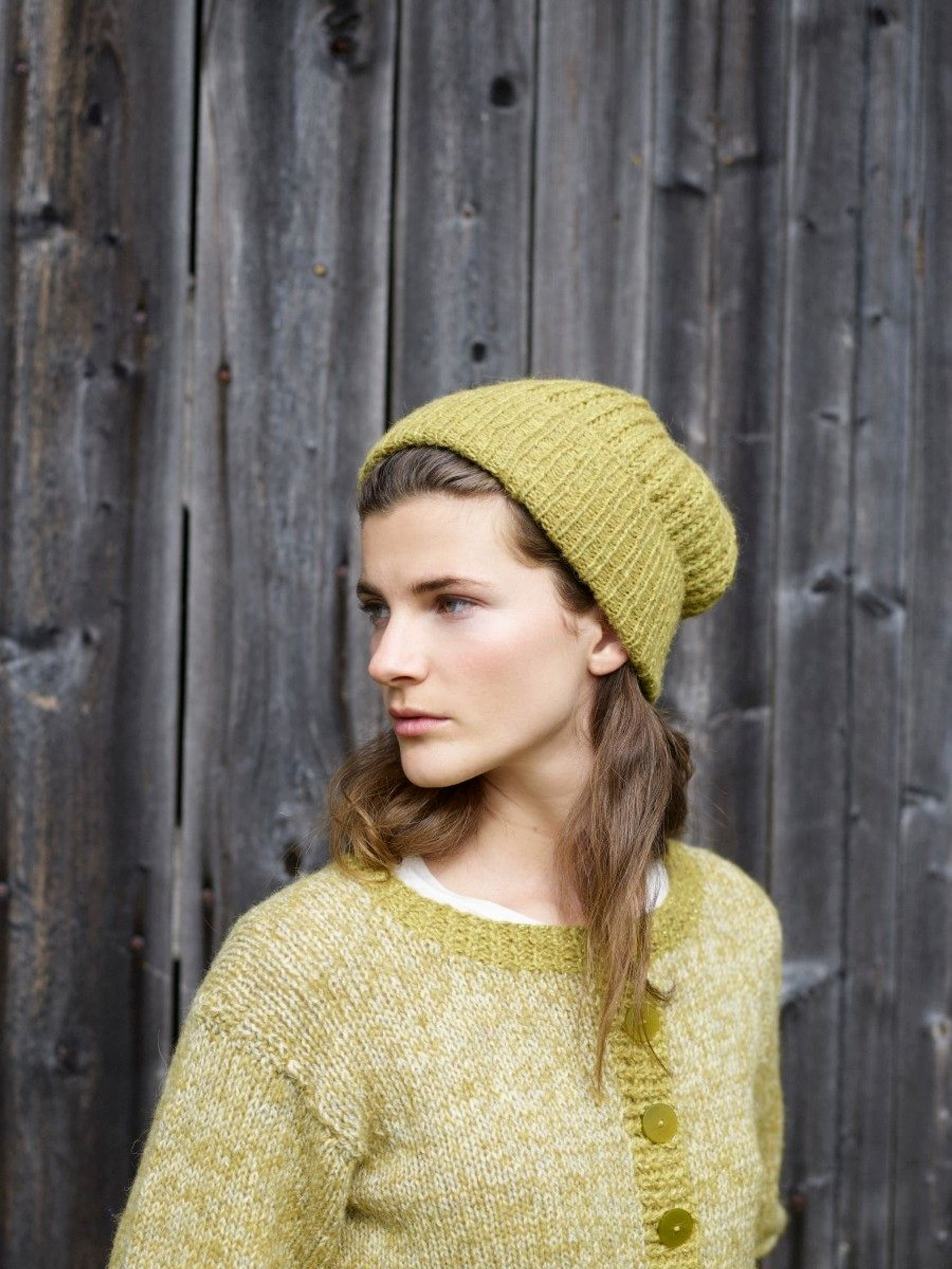 På vrangbordene brukes 3 tråder: Finull, Alpaca Silk og Metallic. Over glattstrikk brukes kun 2 tråder: Finull og Alpaca Silk.