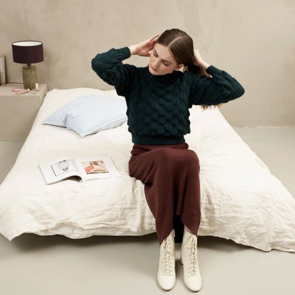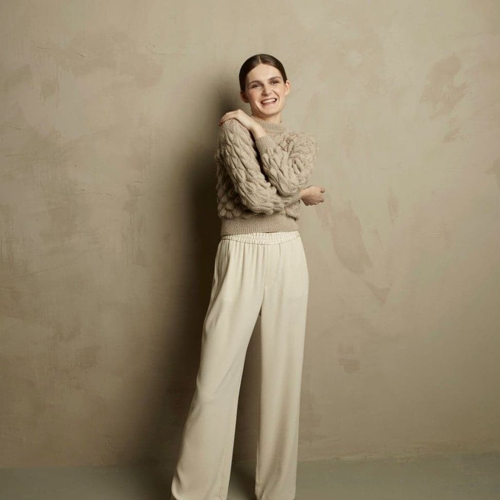 Genseren strikkes med vrangen ut, og vrenges til slutt. Husk dette når trådene festes til slutt.