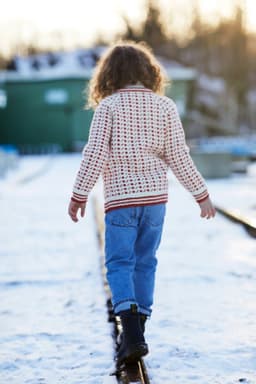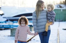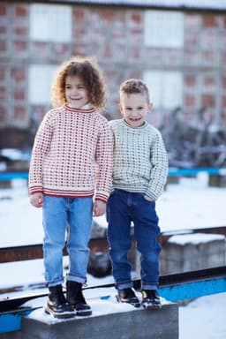 Islender til barn. Genseren på bildet er strikket i den utgåtte kvaliteten Petter. Genseren kan imidlertid også strikkes i 3-tråds Strikkegarn eller Mitu. For å velge farge i 3-tråds Strikkegarn, velg "Alt 1 eller Alt 2: 3-tråds Strikkegarn". For å velge farge i Mitu, velg "Alt 3: Mitu".