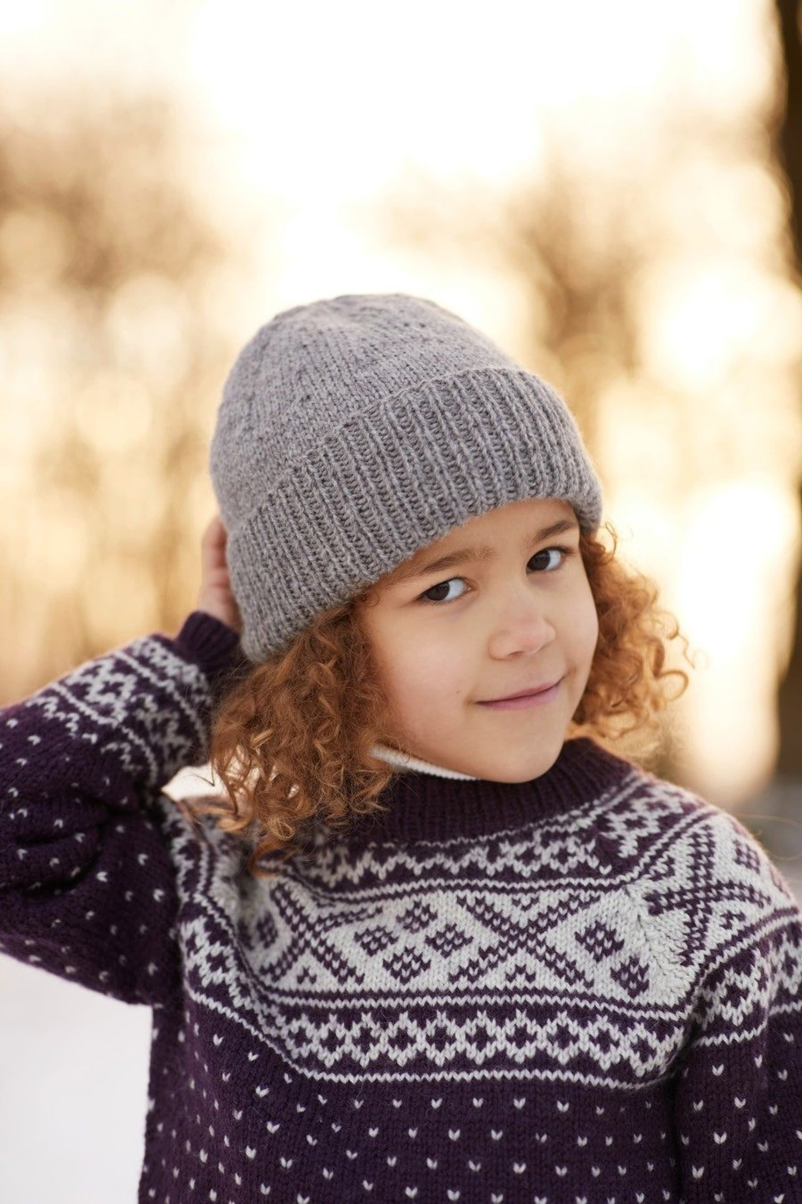 Lue til barn, dame og herre. Genseren på bildet er strikket i den utgåtte kvaliteten Petter. Genseren kan imidlertid også strikkes i 3-tråds Strikkegarn eller Mitu. For å velge en farge i 3-tråds Strikkegarn, velg "Alt 1–3: 3-tråds Strikkegarn". For å velge farge i Mitu, velg "Alt 4–6: Mitu".