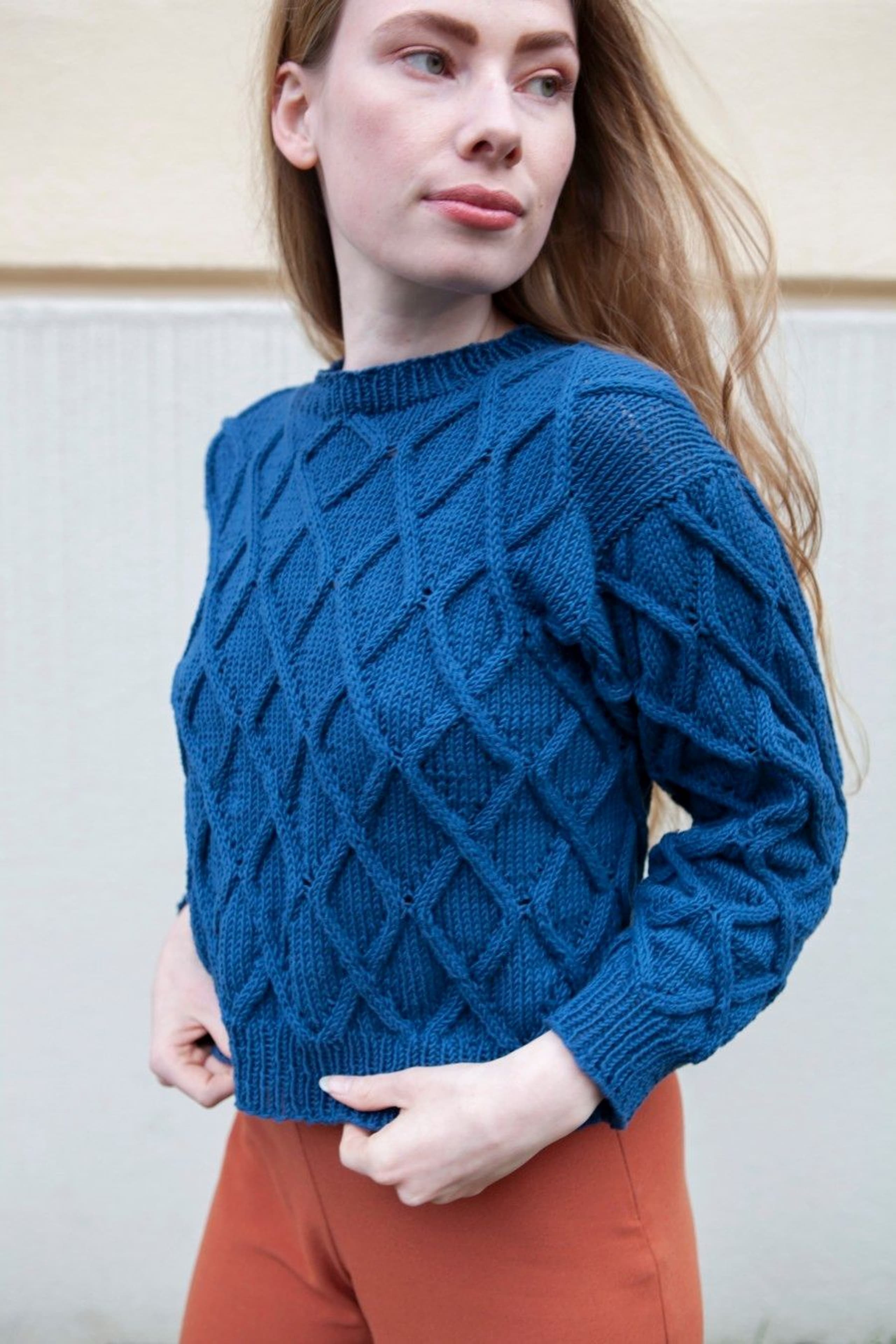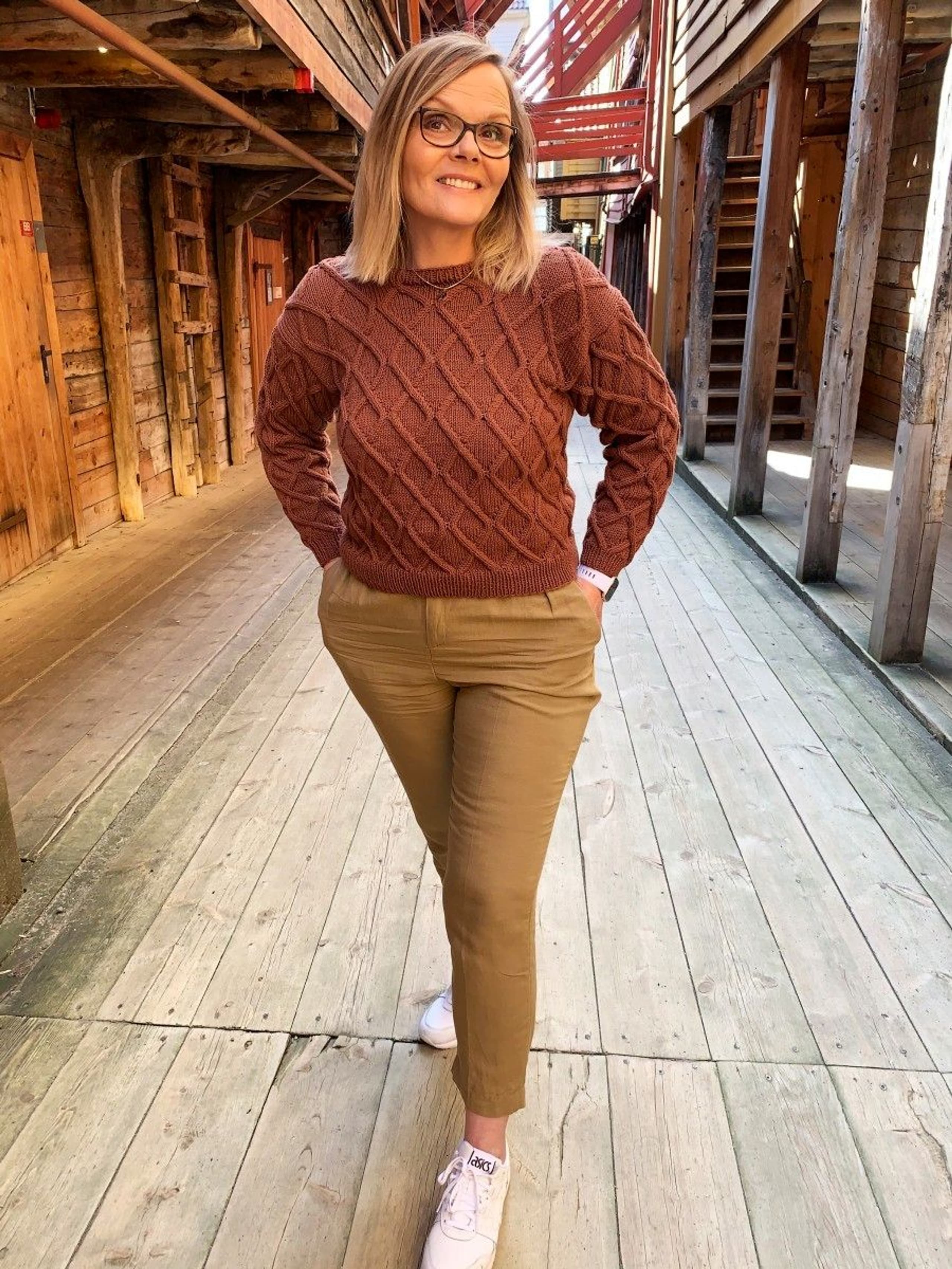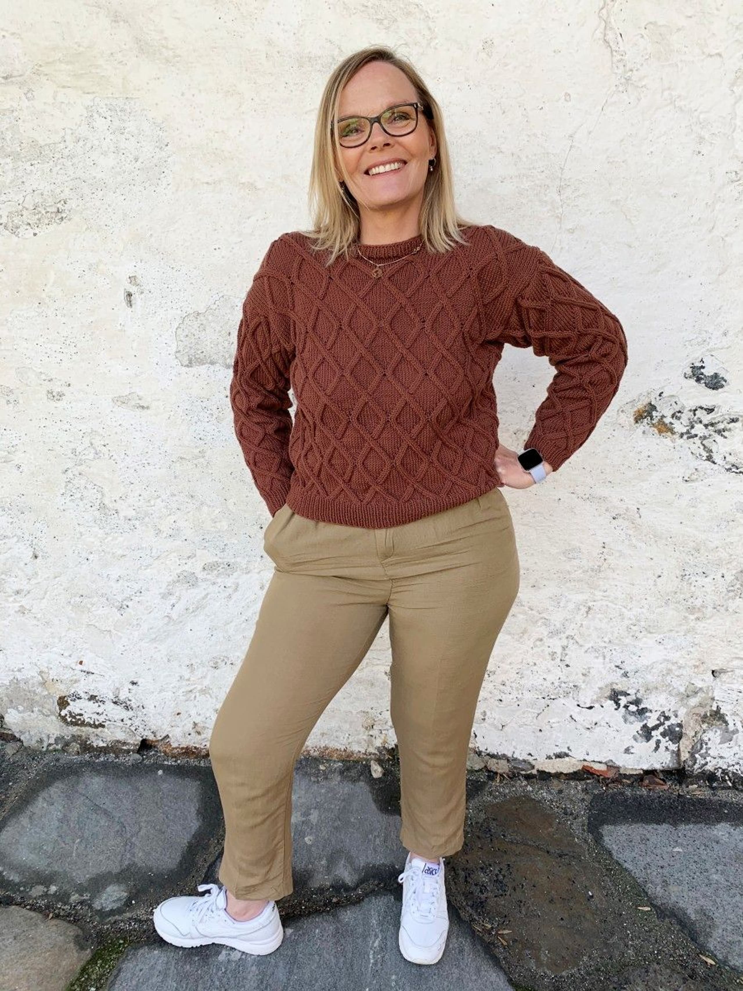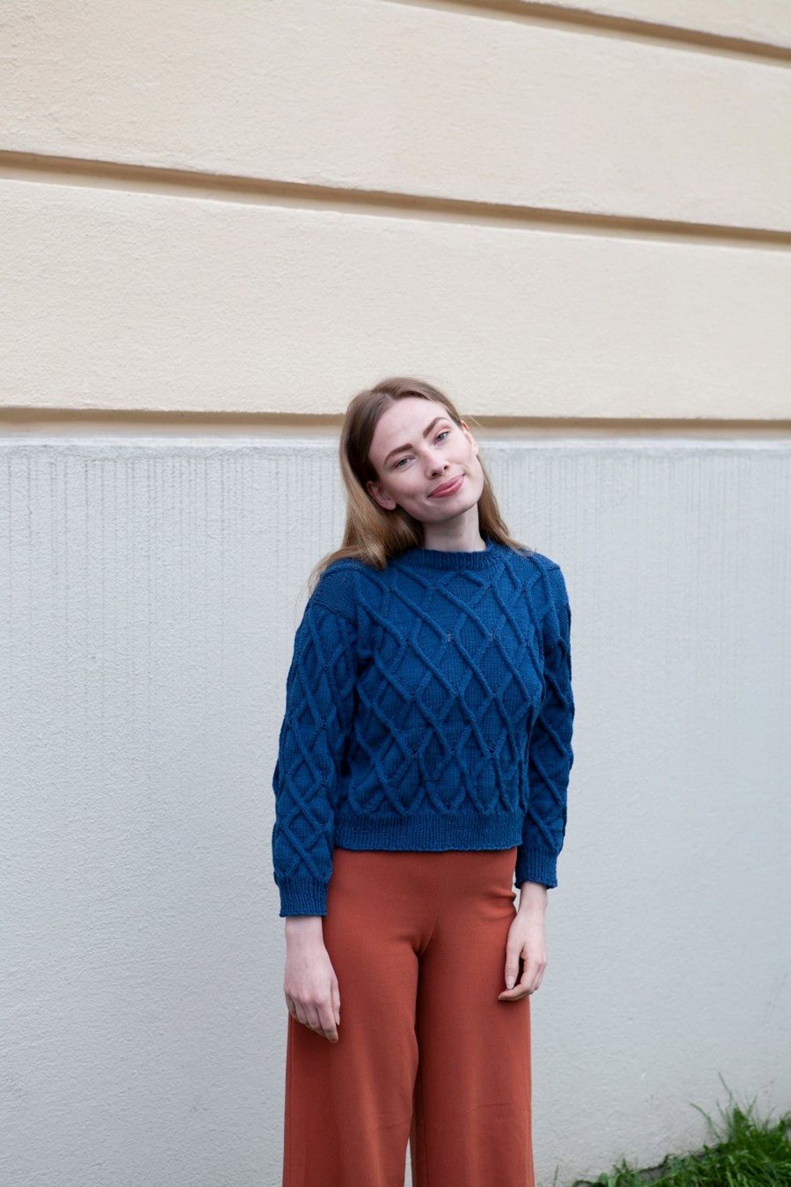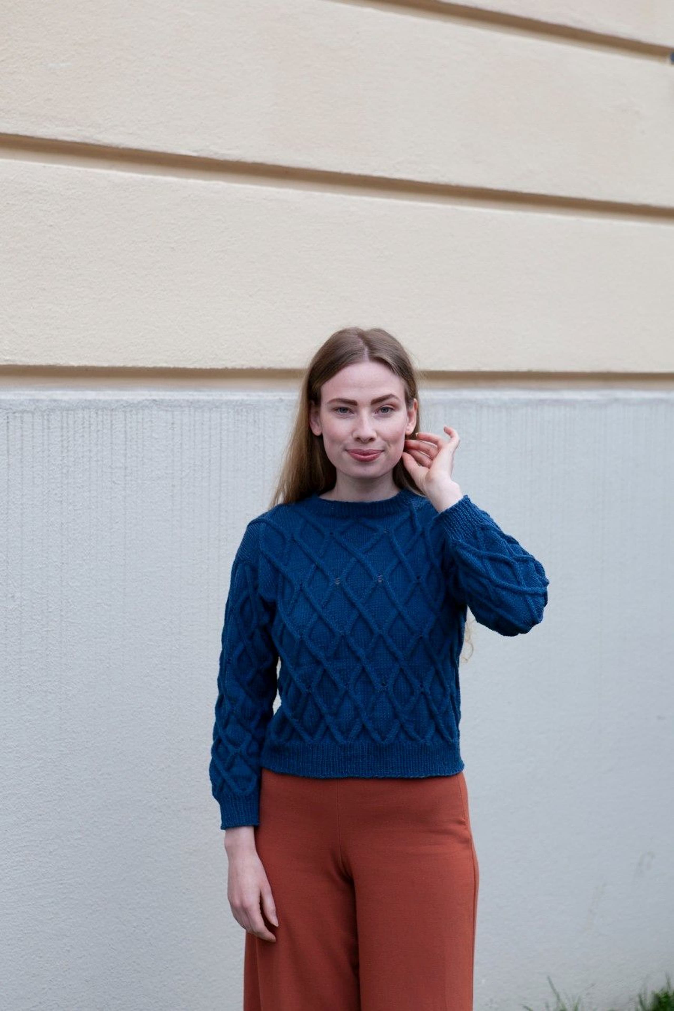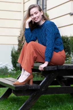 Juliegenser har en kort passform som passer til bukse eller skjørt med høyt liv, eller over en kjole. Ønsker du en lenger passform er det enkelt å strikke bol litt lenger før det felles til ermehull. Pass i så fall på å beregne litt ekstra garn til genseren.