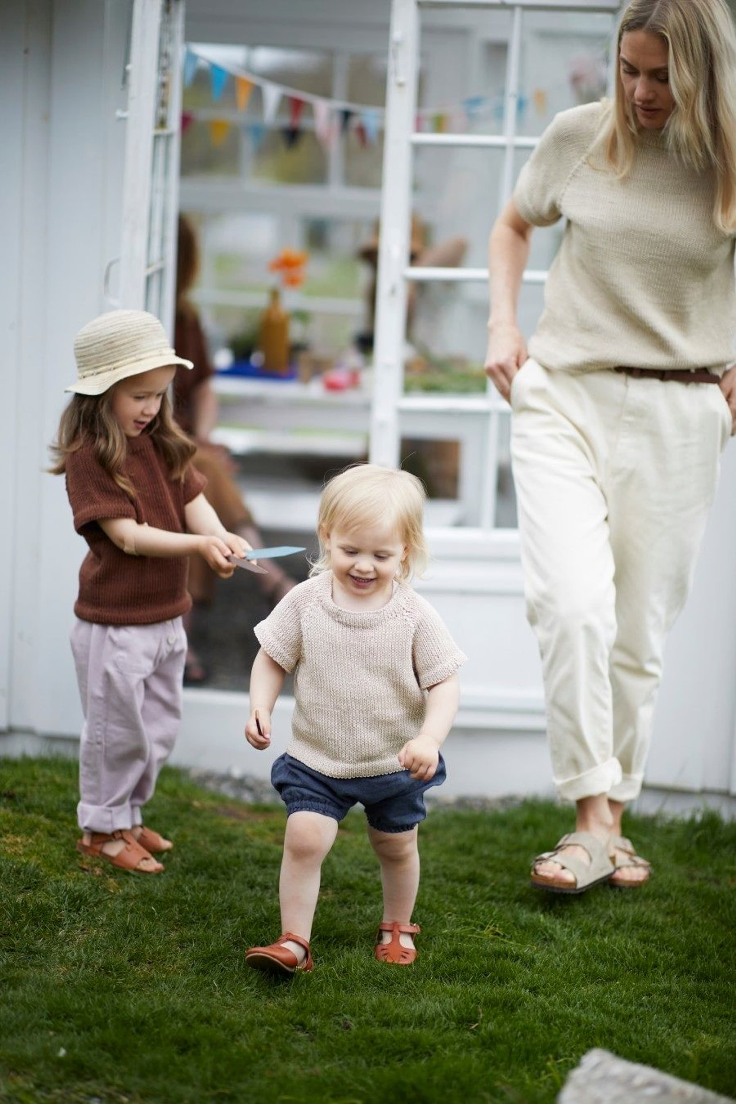 Hassel tee, er en kort raglan topp. Hvis man ønsker en lengre variant kan bolen strikkes lengre før det felles av til ermene, husk at det da trengs mer garn.