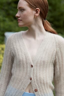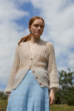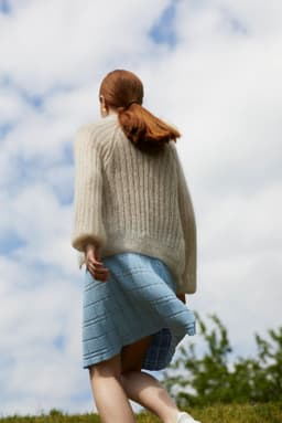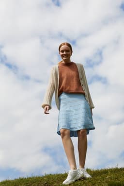 Adajakke er en trendy ribbestrikket jakke som strikkes med 2 r, 2 vr. Jakka er veldig elastisk og passer derfor til oppgitte mål selv om den trekker seg sammen. Den strikkes nedenfra med dobbel tråd.