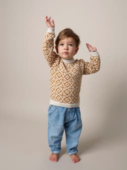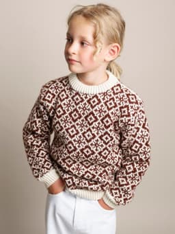 Multegenseren er en helmønstret genser med isydde ermer. Genseren er strikket rundt og klipt opp til ermer og utringning.