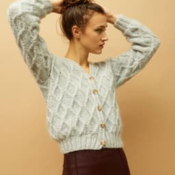 Den deilige flettejakka er en myk og god jakke strikket med en tråd Lamull sammen med to tråder Plum. En kombinasjon som gir et veldig myk og deilig plagg. Hele jakken strikkes i et nydelig flettemønster. Den strikkes nedenfra og opp og har isydde ermer. Jakka har en kort passform. Ønsker du en lenger passform er det enkelt å strikke bolen litt lenger før du feller til ermehull. Pass i så fall på å beregne litt ekstra garn.