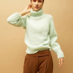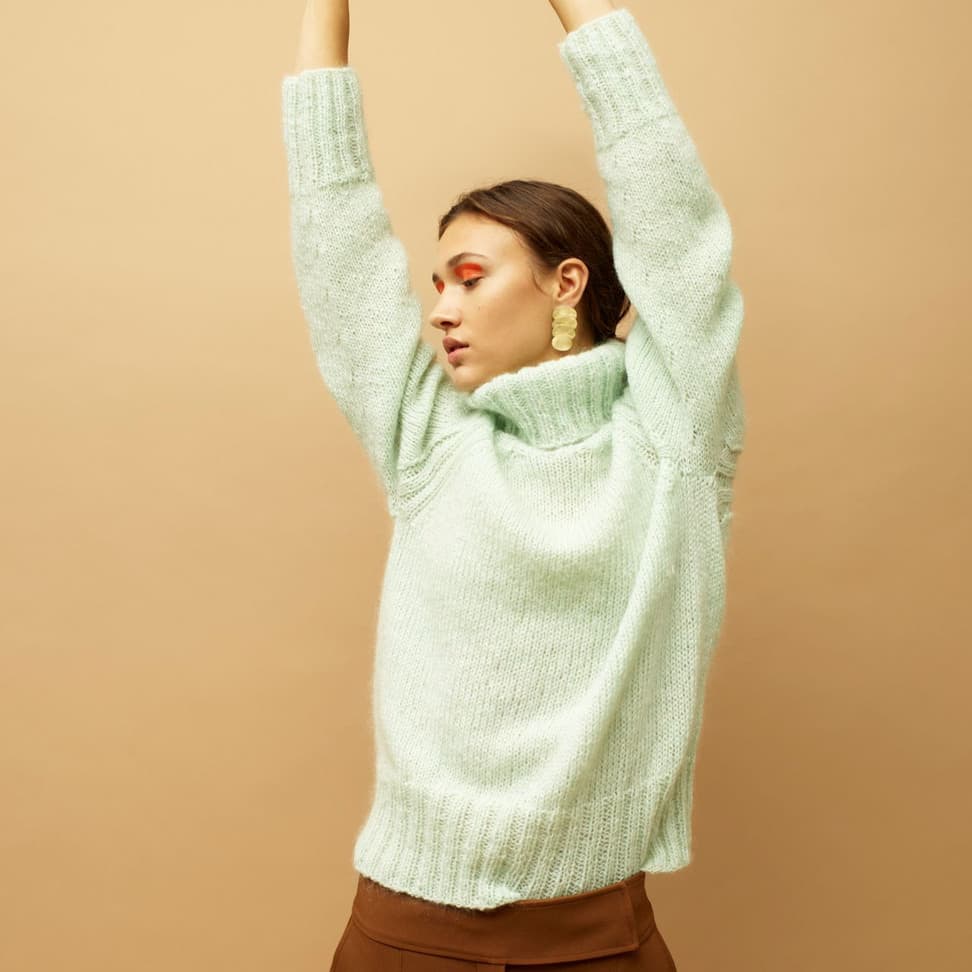 Den myke høyhalseren er en trendy høyhalset genser som passer perfekt utover høsten. Den er strikket med en tråd Lamull sammen med to tråder Plum, en deilig kombinasjon som gir et veldig godt og mykt plagg. Den er strikket nedenfra og opp, med bred raglan, brede ribbekanter og en høy hals. Ønsker du en lavere hals er det enkelt å juster høyden på halsen etter ønske.