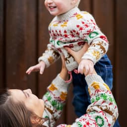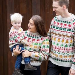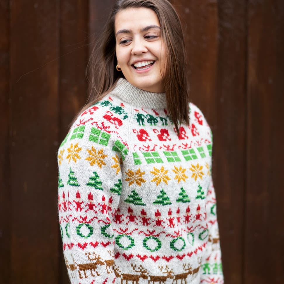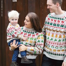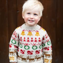 Julegenseren til barn er strikket nedfra og opp. Det er skrevet forslag til rekkefølge på diagrammene under, men strikk gjerne din egen kombinasjon. Husk 3 omg med farge 1 mellom alle diagrammene.
