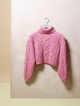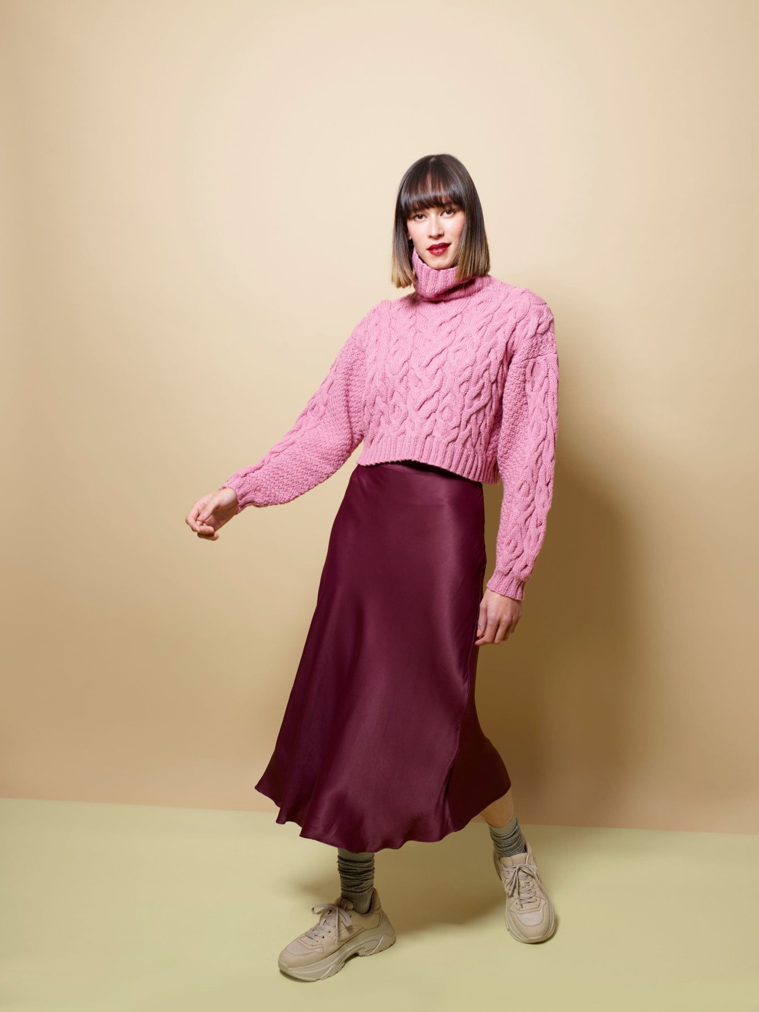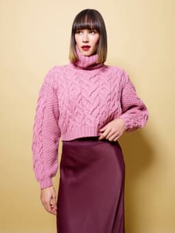 Istragenseren er en høyhalset genser med fletter og isatte ermer.Genseren er vid og kort.